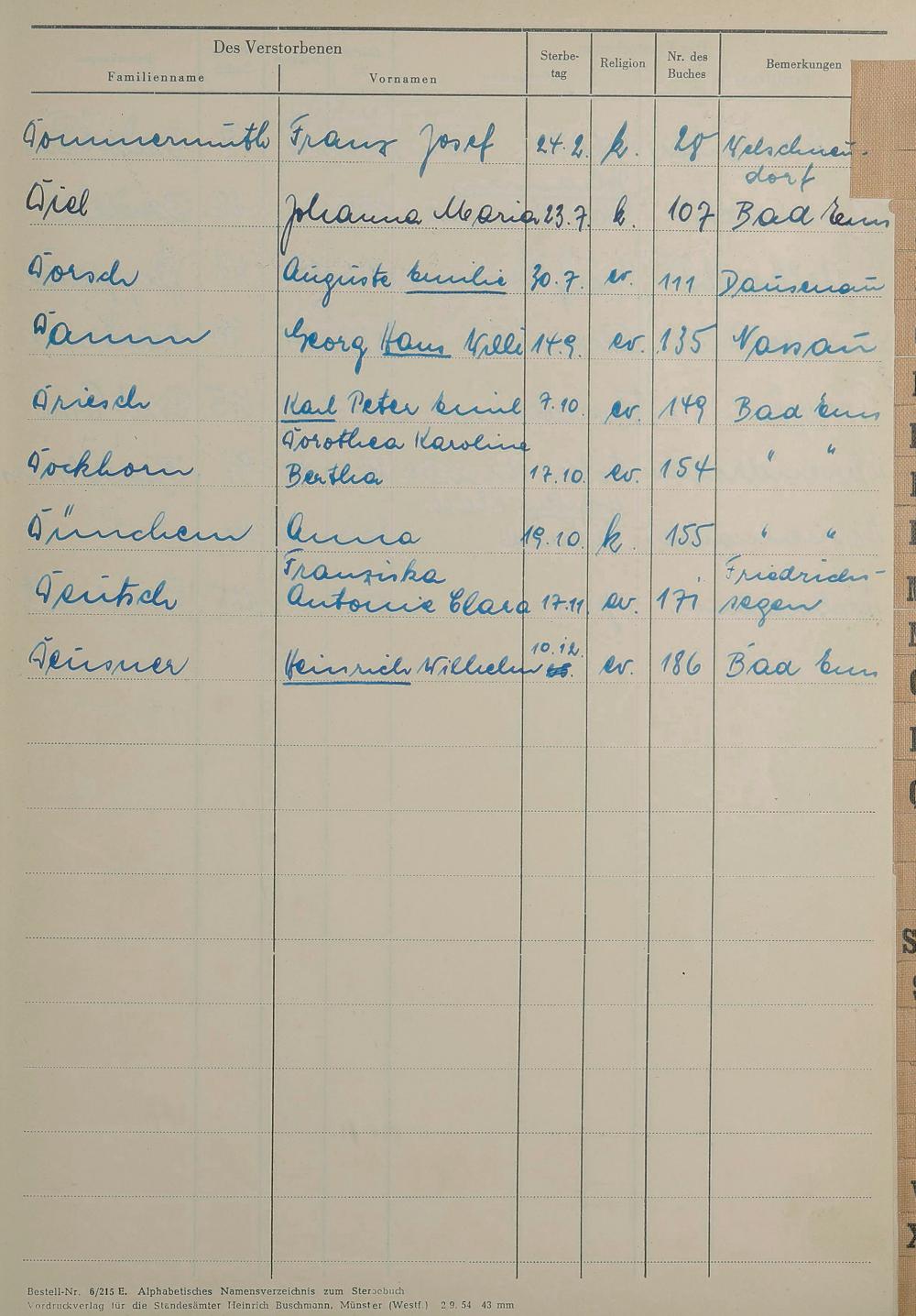 1531: Sterberegister 1955