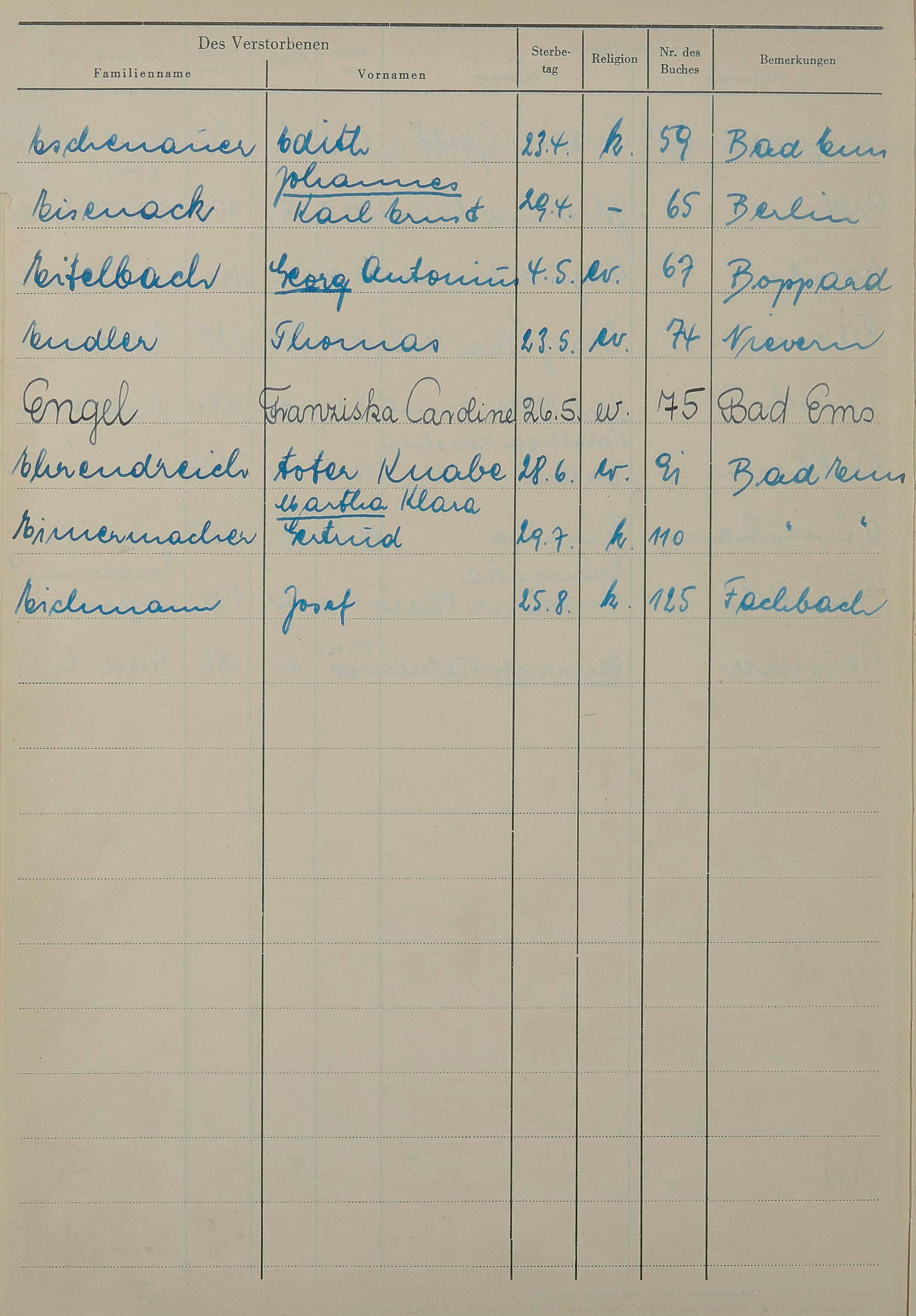 1531: Sterberegister 1955
