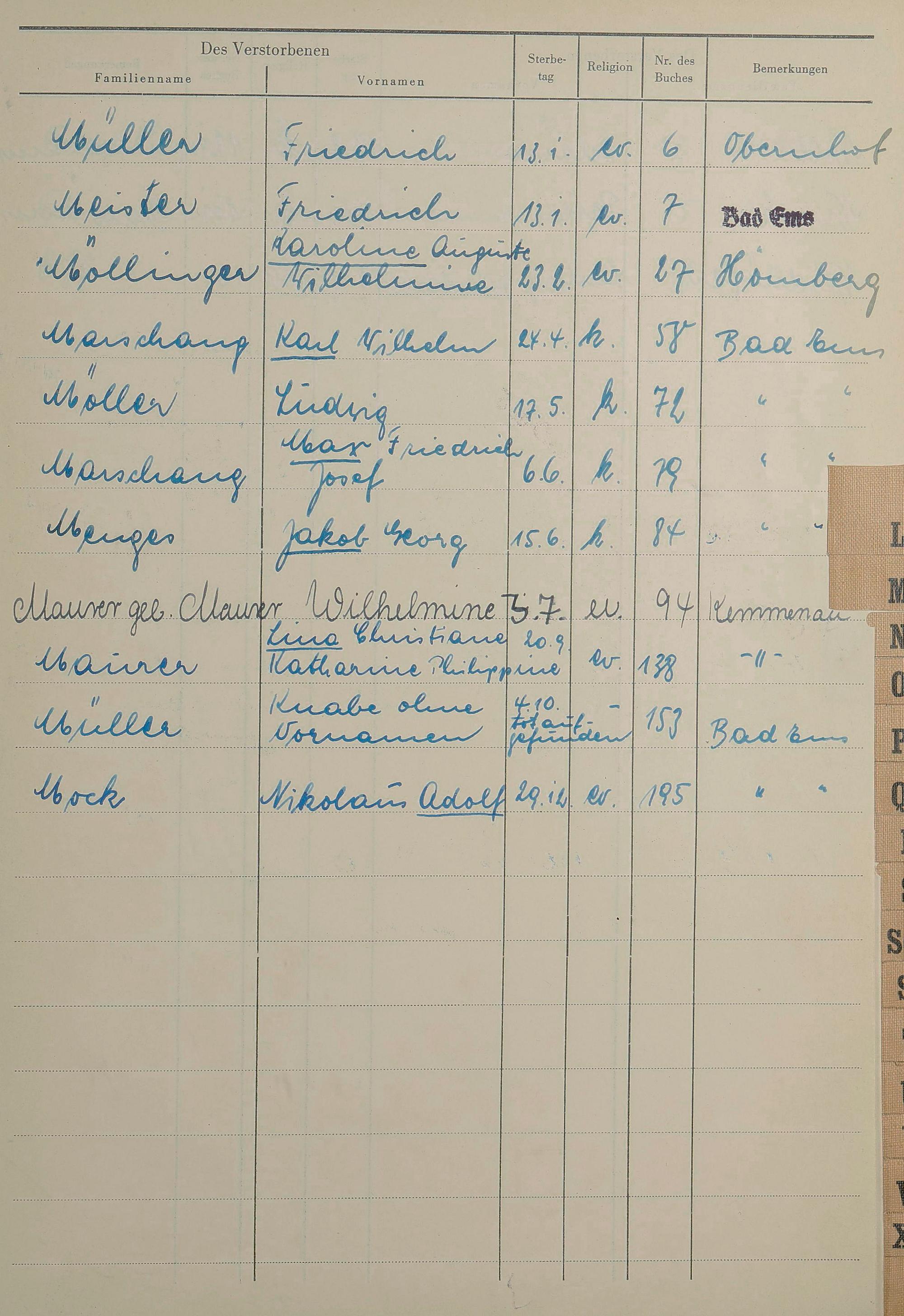 1531: Sterberegister 1955
