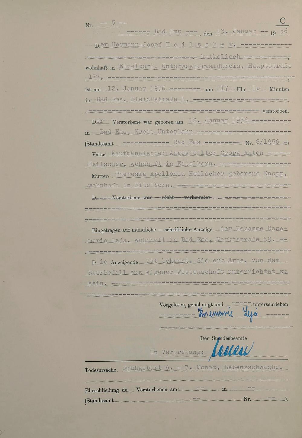 1532: Sterberegister 1956