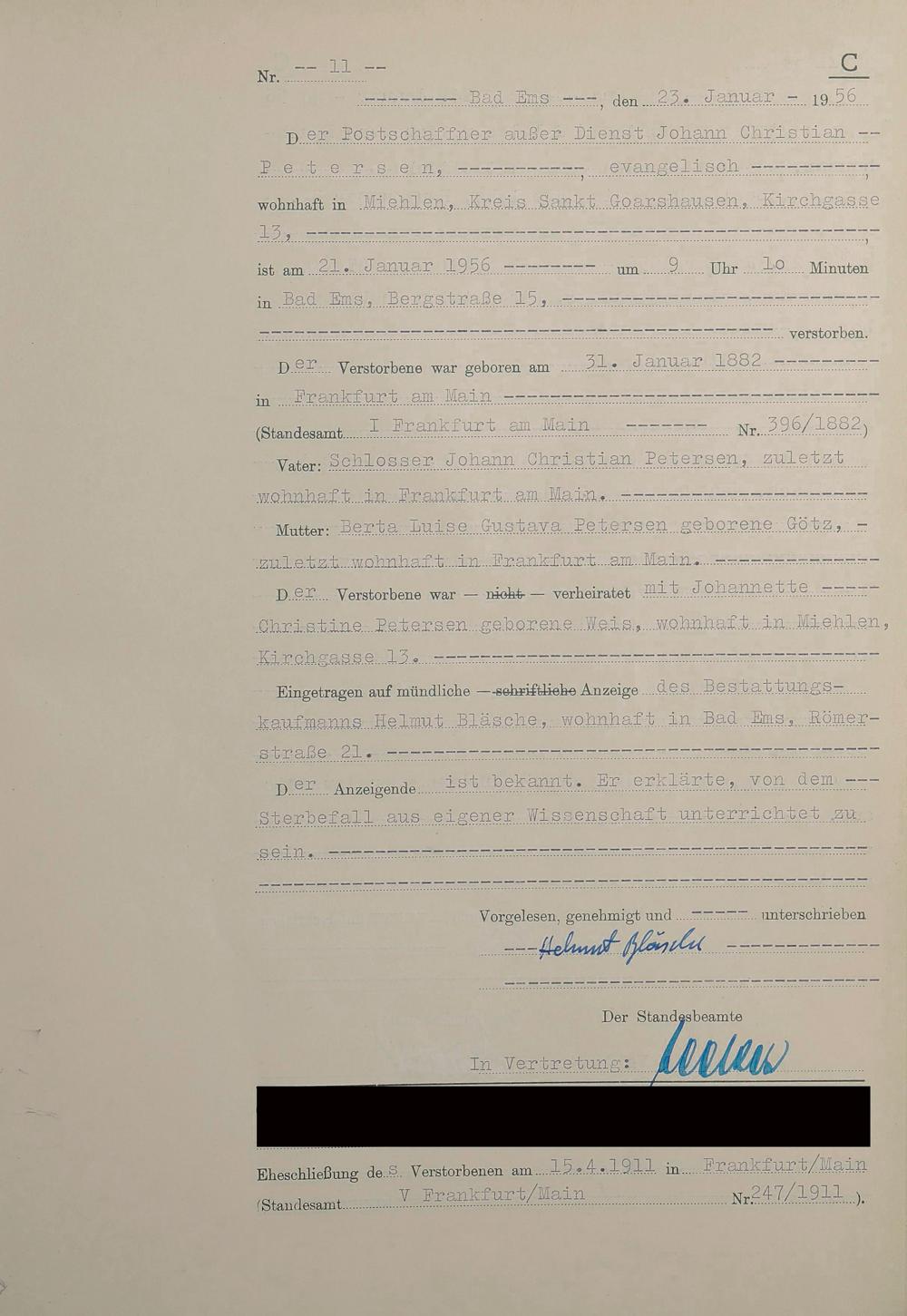 1532: Sterberegister 1956