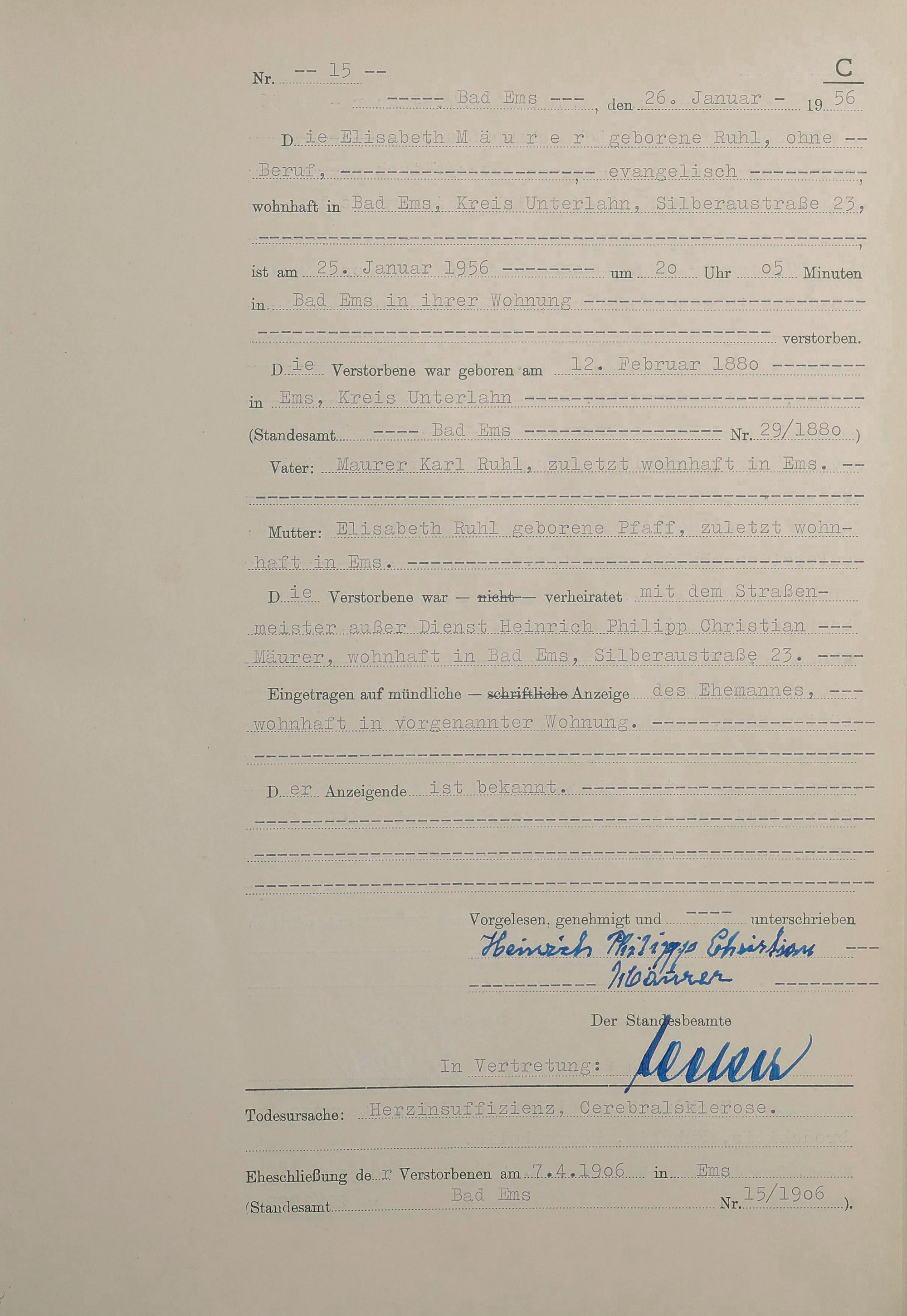 1532: Sterberegister 1956