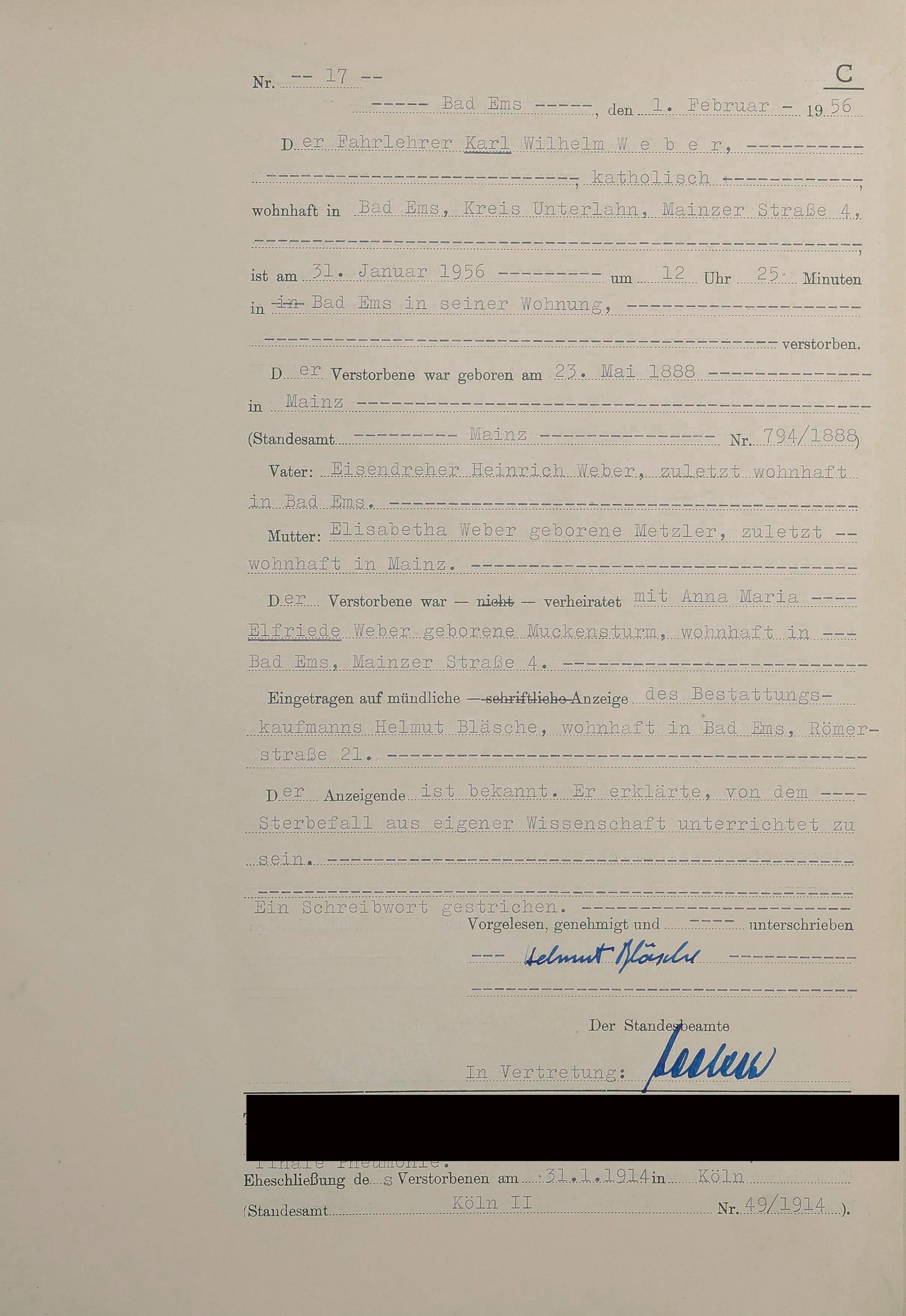 1532: Sterberegister 1956