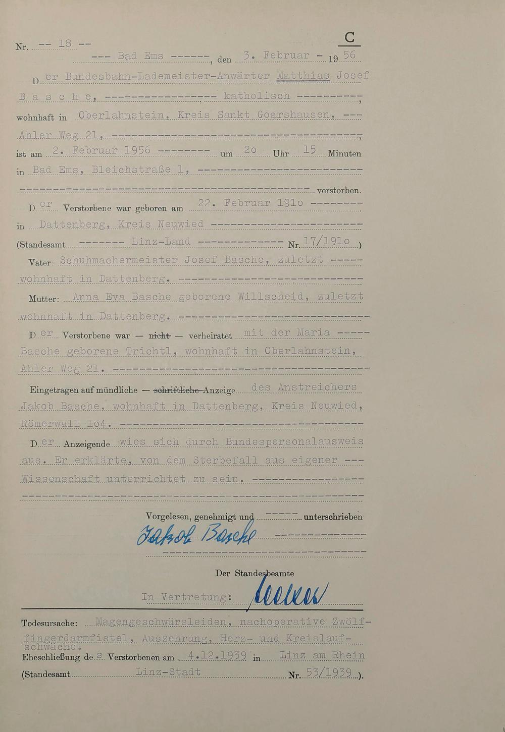 1532: Sterberegister 1956