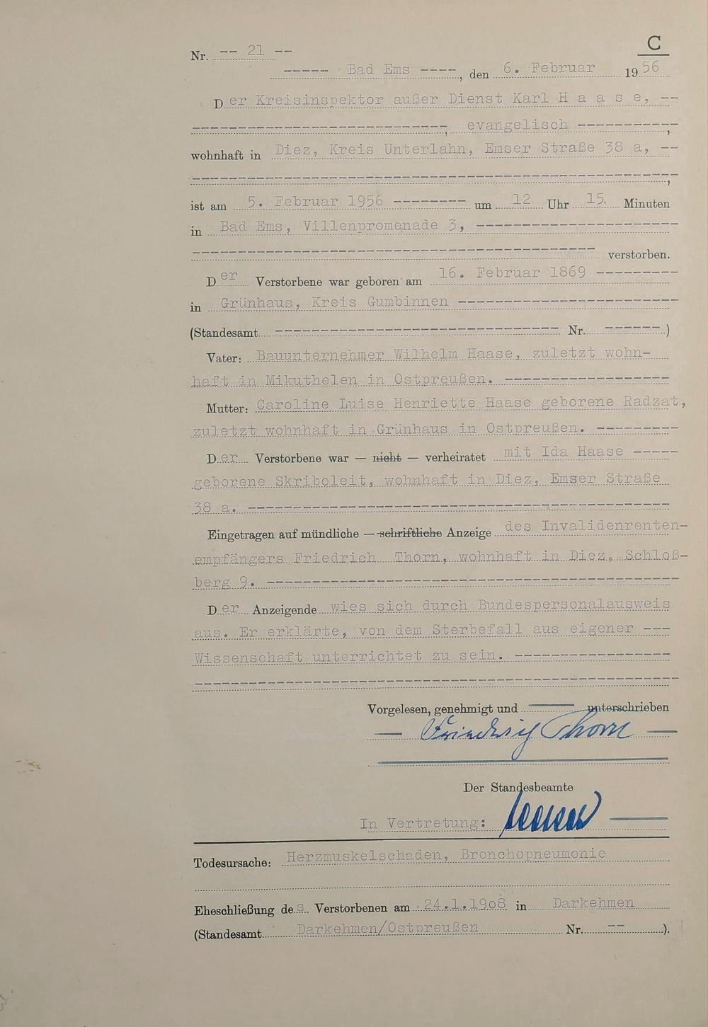 1532: Sterberegister 1956