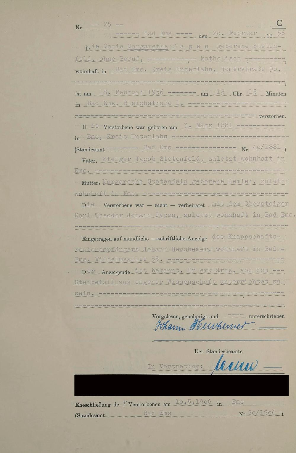 1532: Sterberegister 1956
