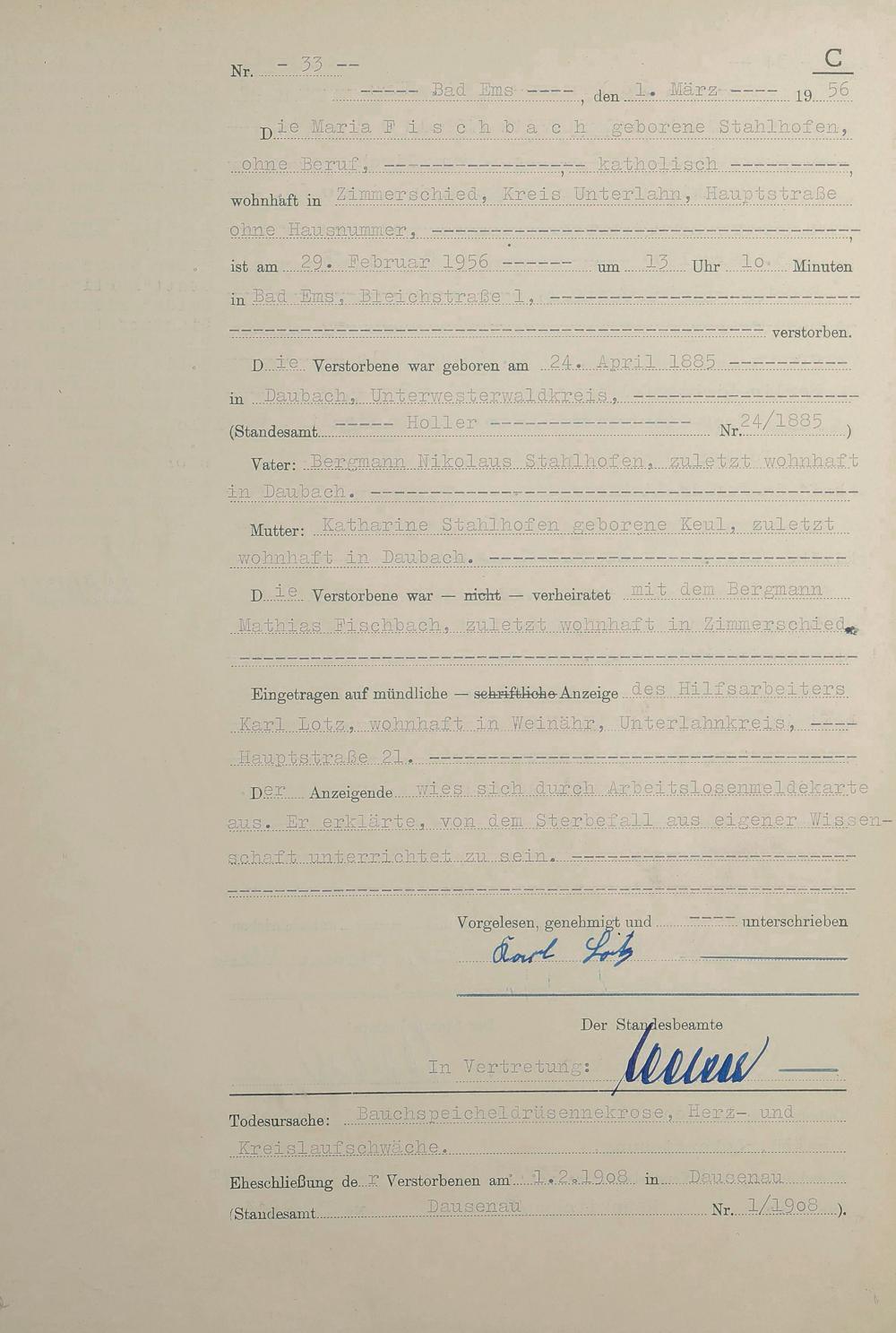 1532: Sterberegister 1956