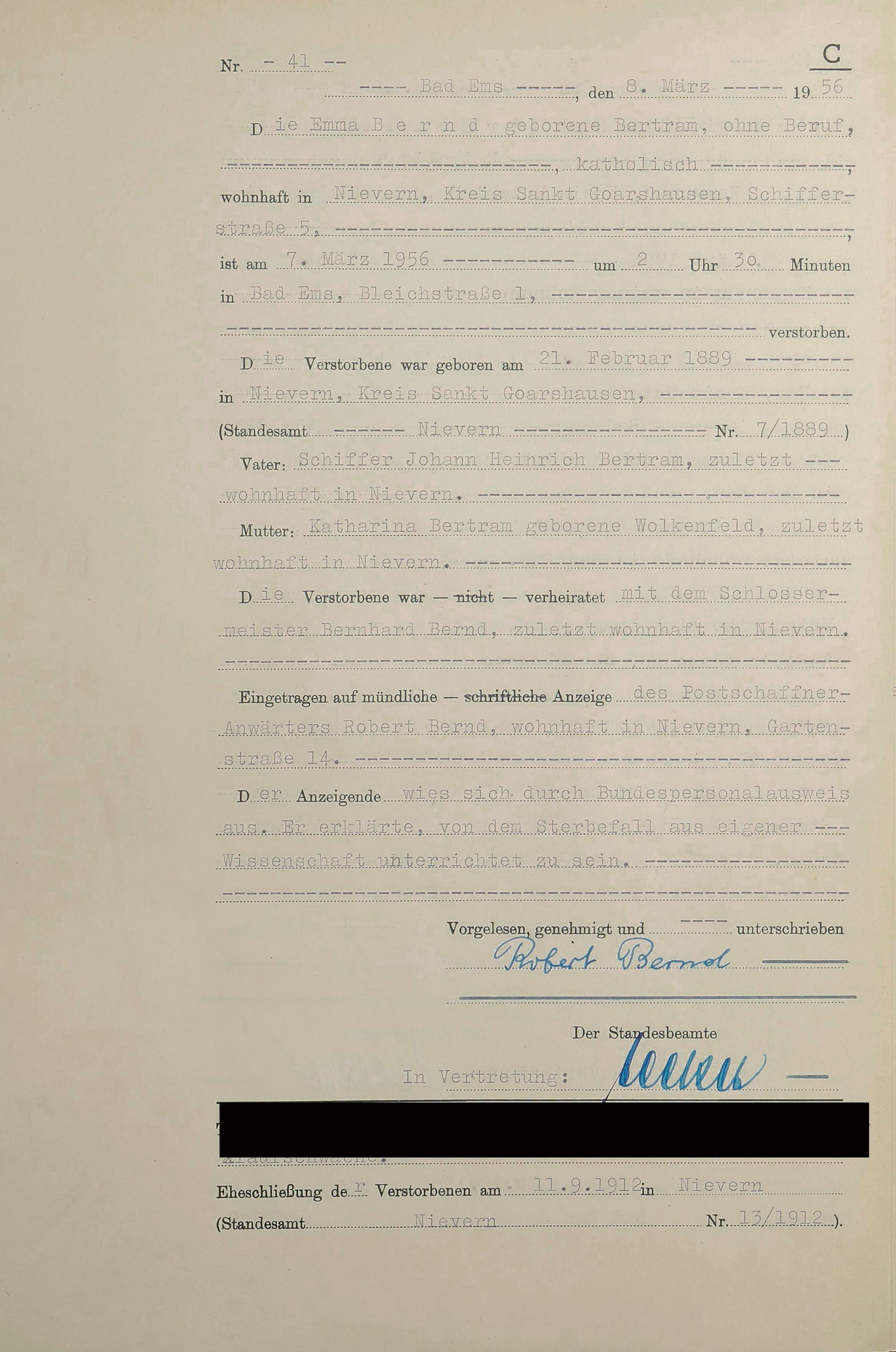 1532: Sterberegister 1956