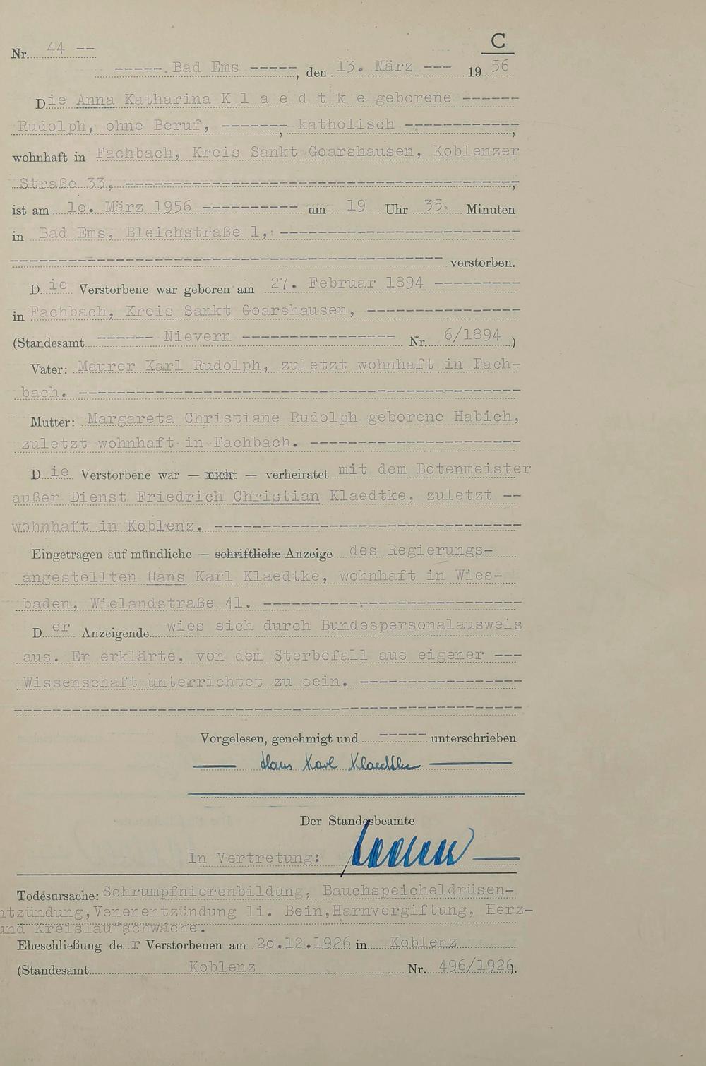 1532: Sterberegister 1956