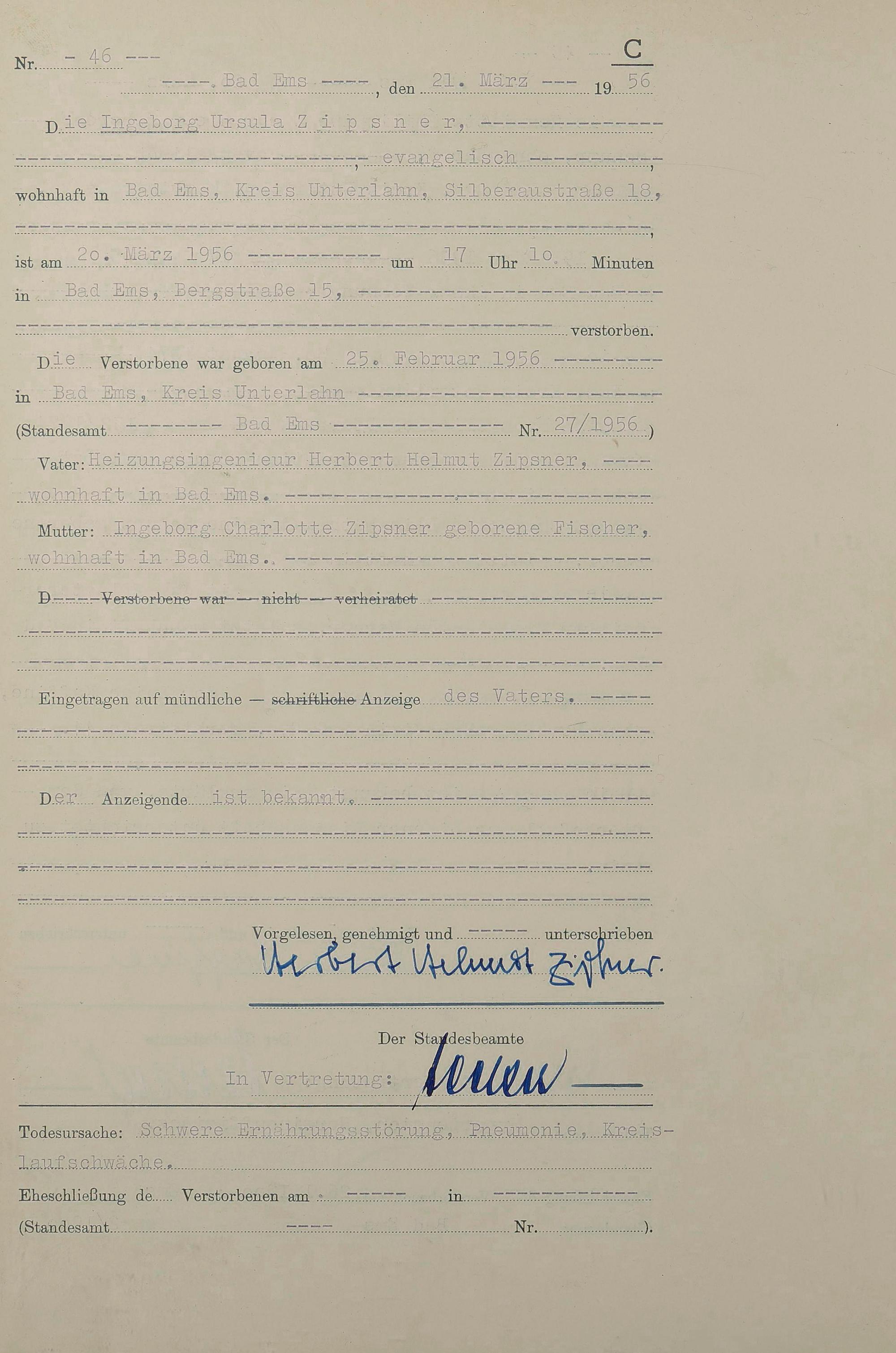 Sterberegister 1956