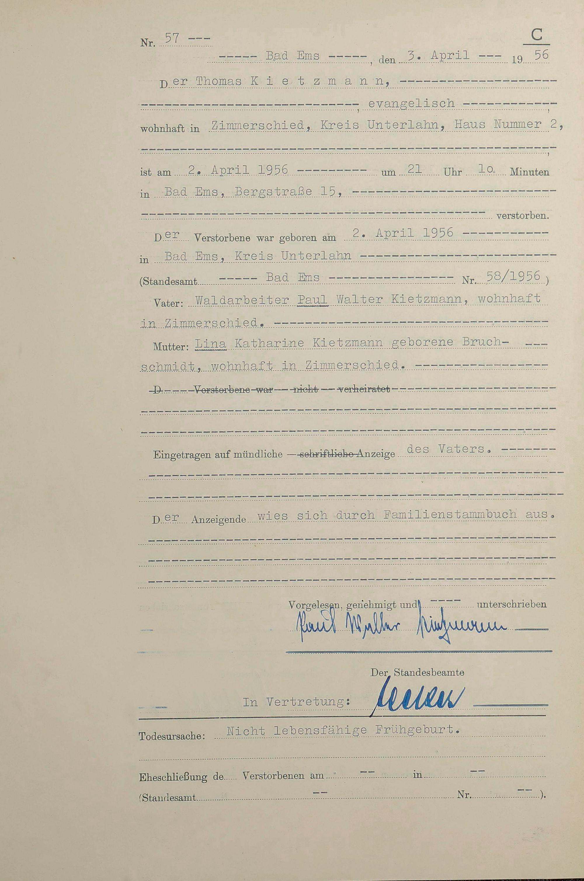 1532: Sterberegister 1956