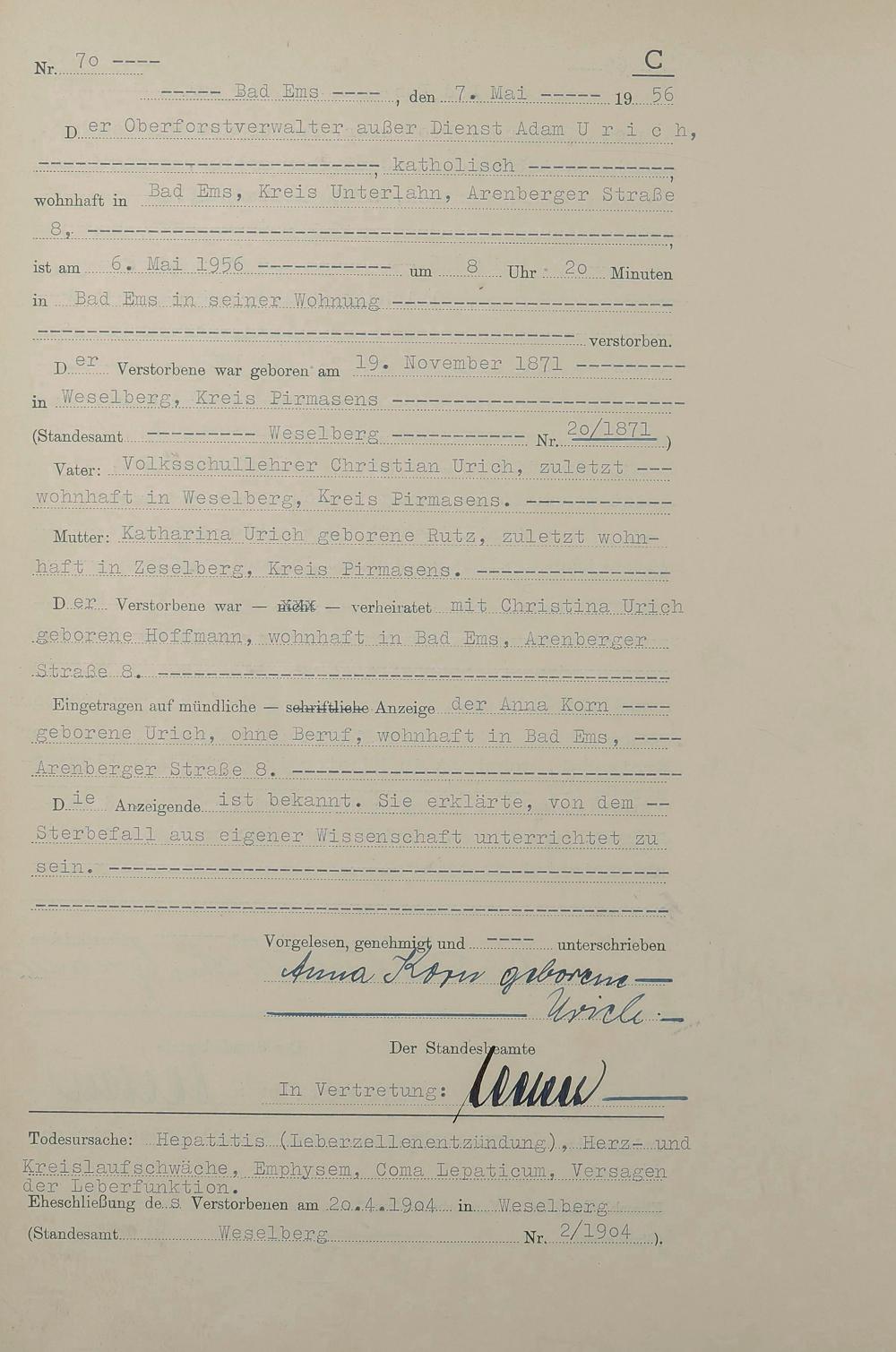 1532: Sterberegister 1956