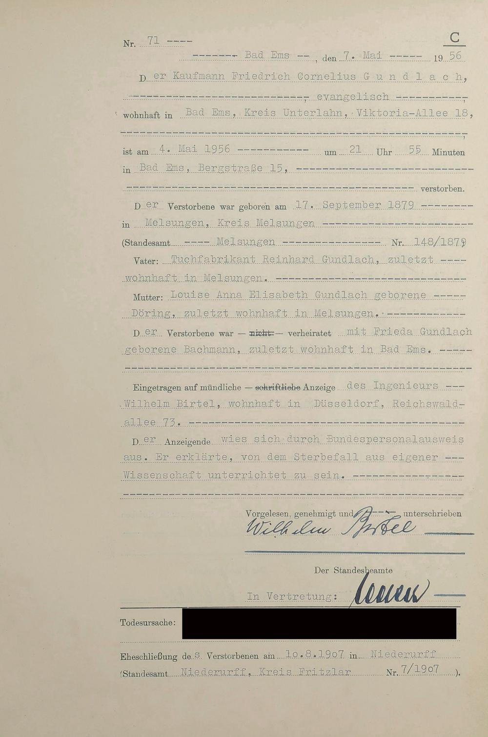 1532: Sterberegister 1956