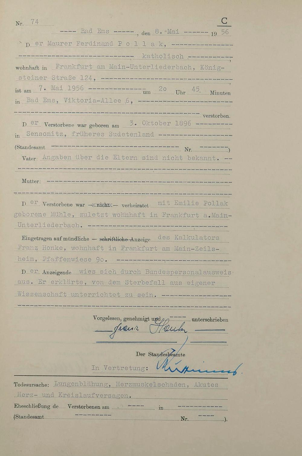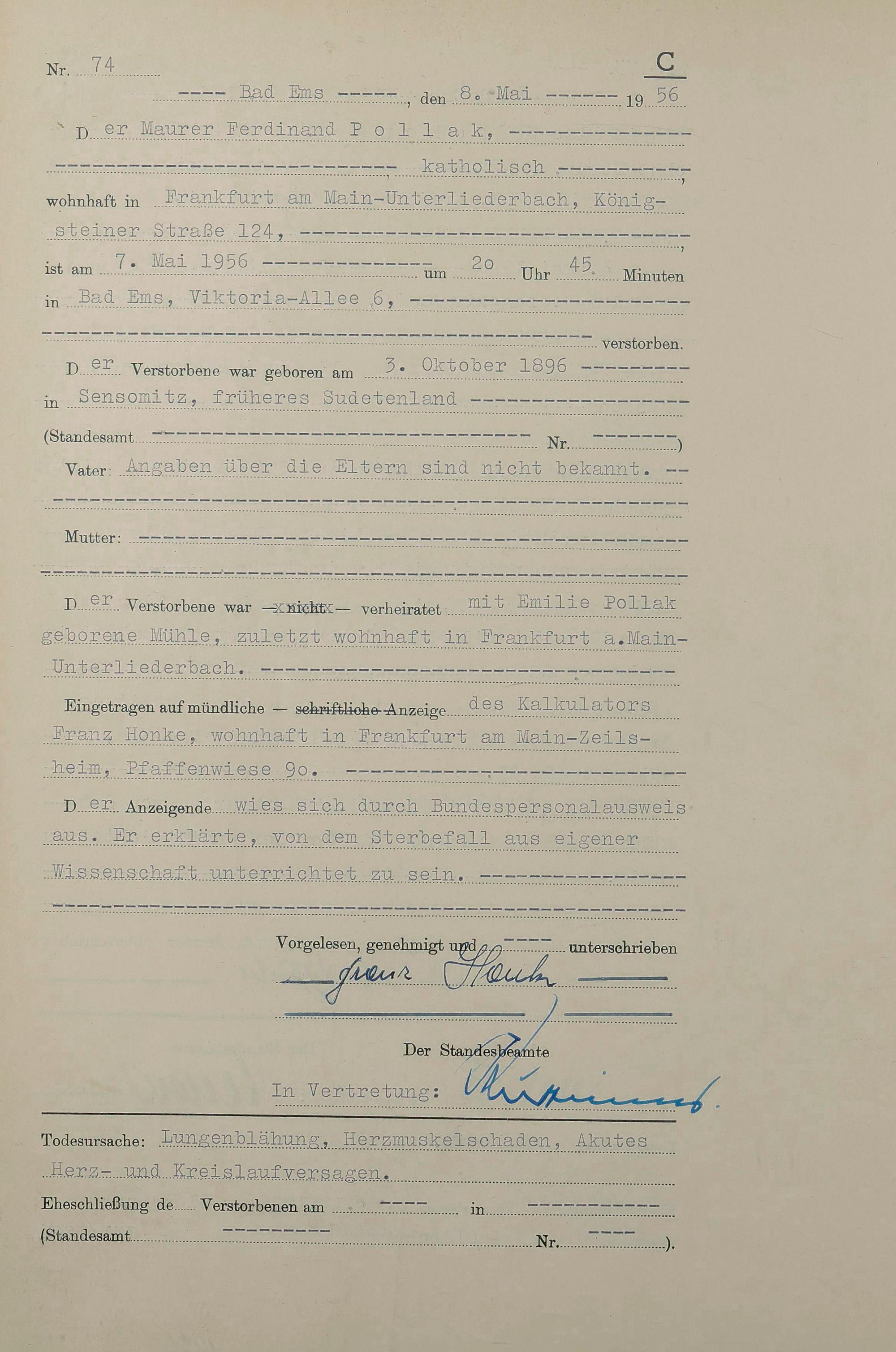 Sterberegister 1956