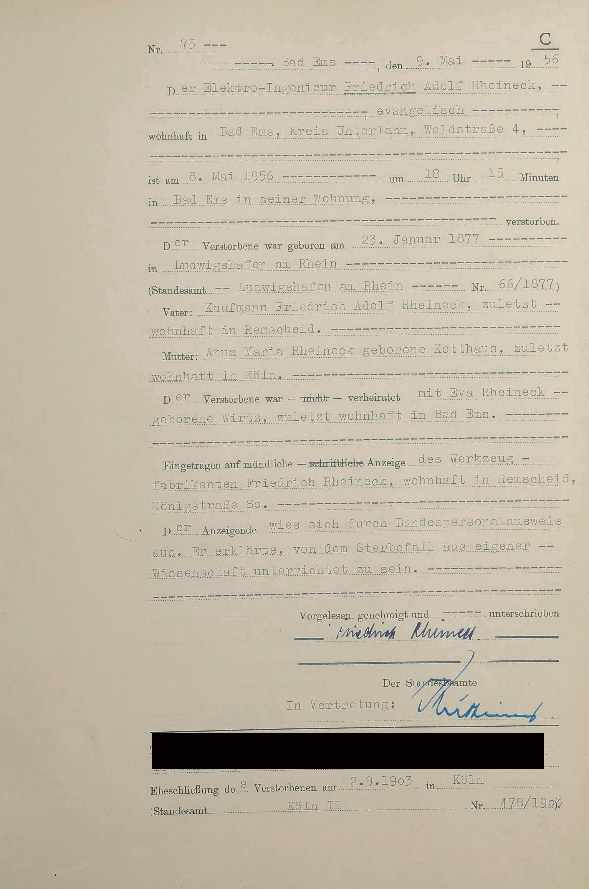 1532: Sterberegister 1956