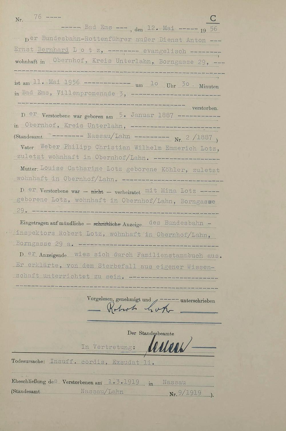 1532: Sterberegister 1956