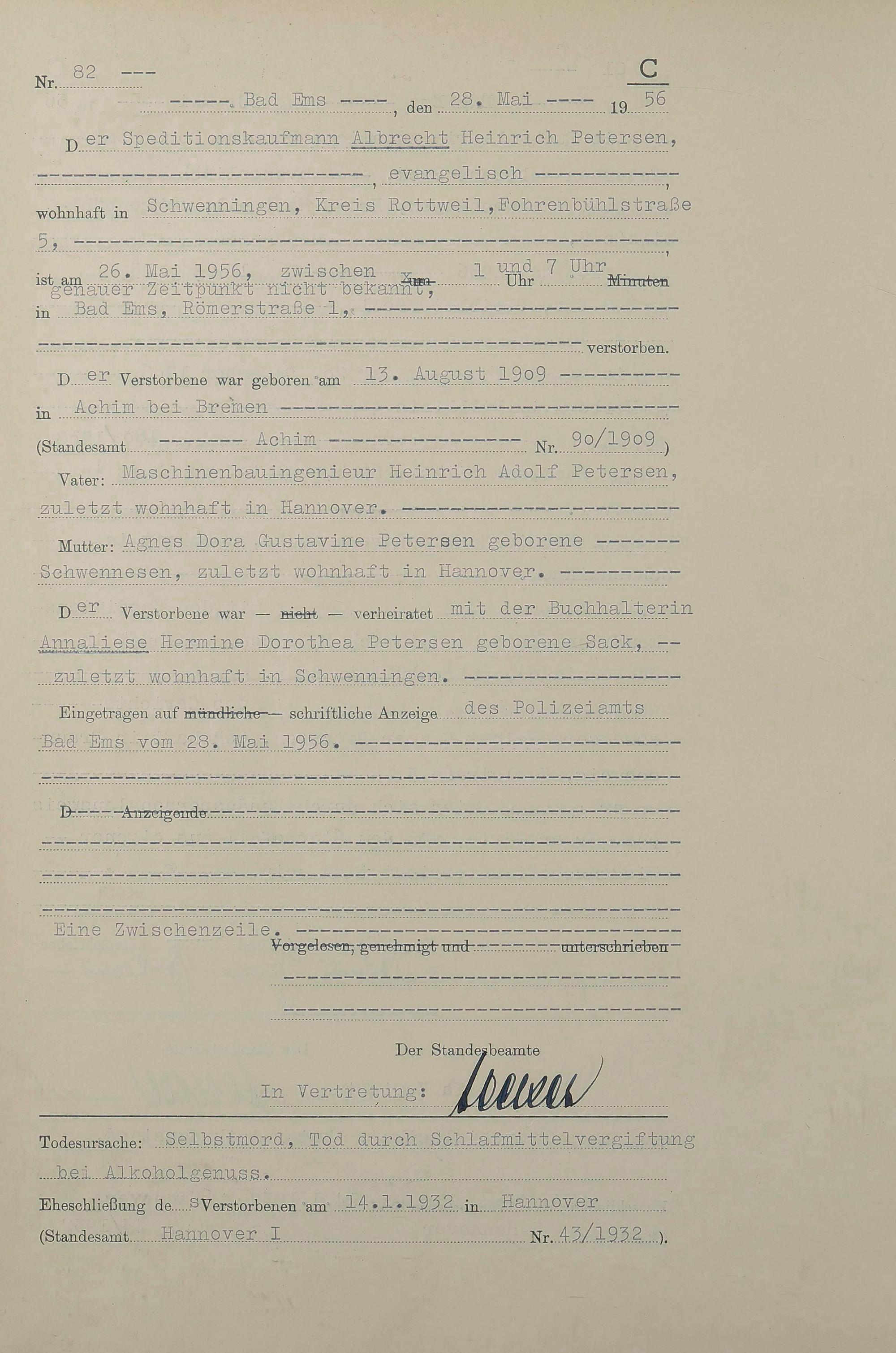 1532: Sterberegister 1956