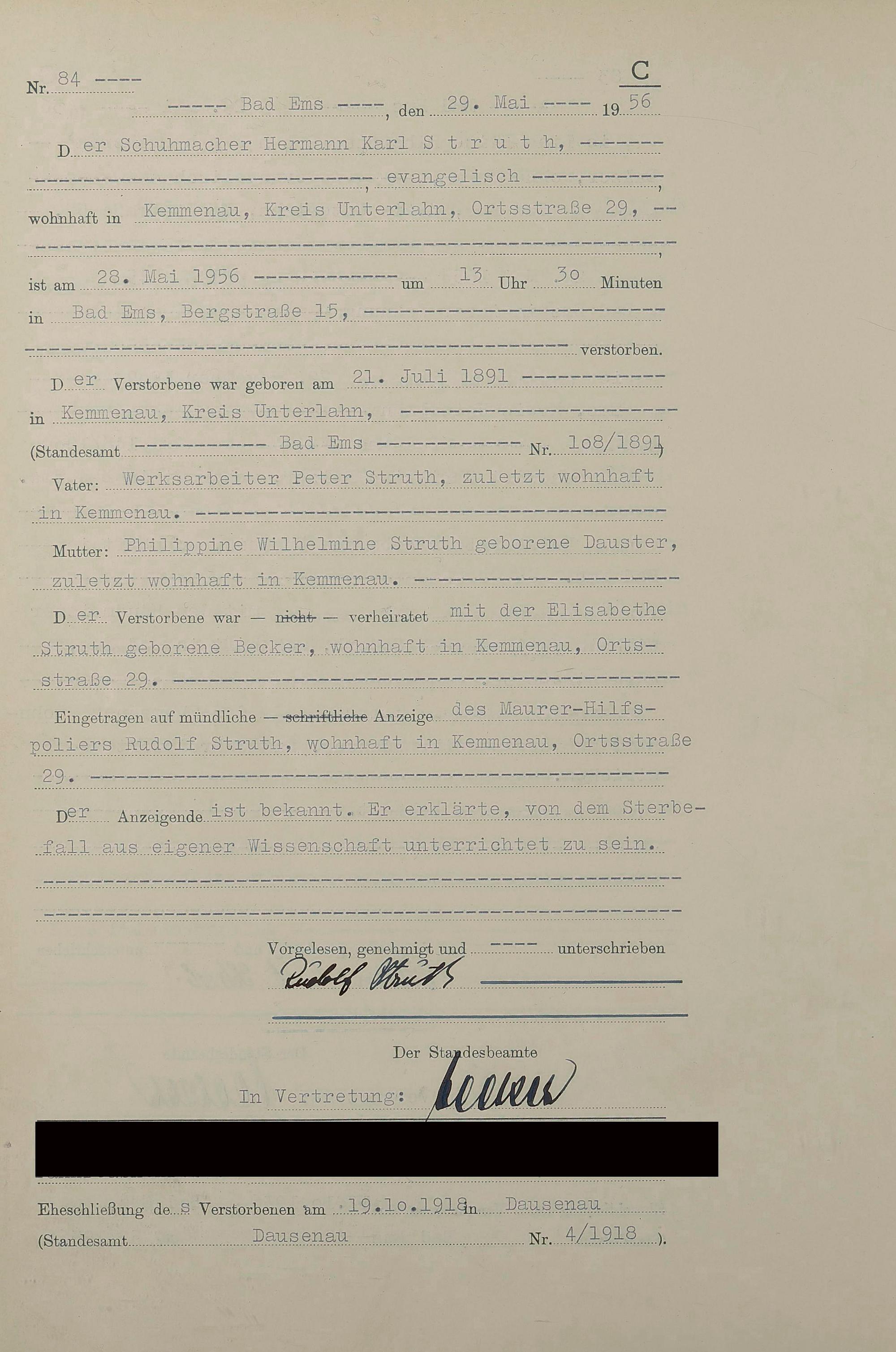 1532: Sterberegister 1956