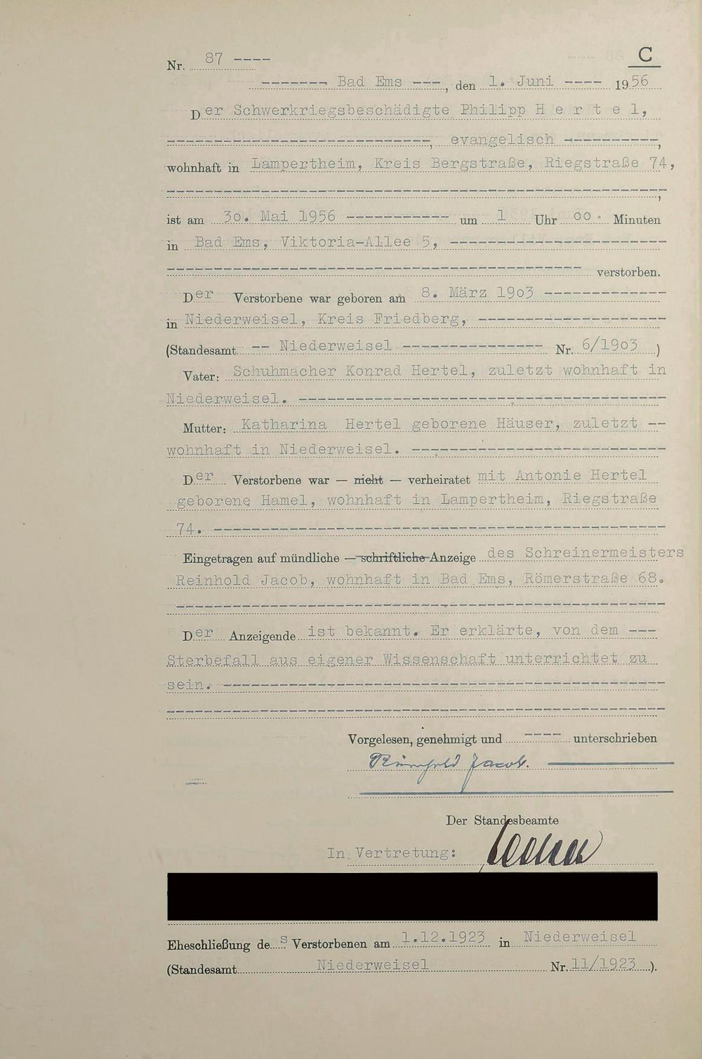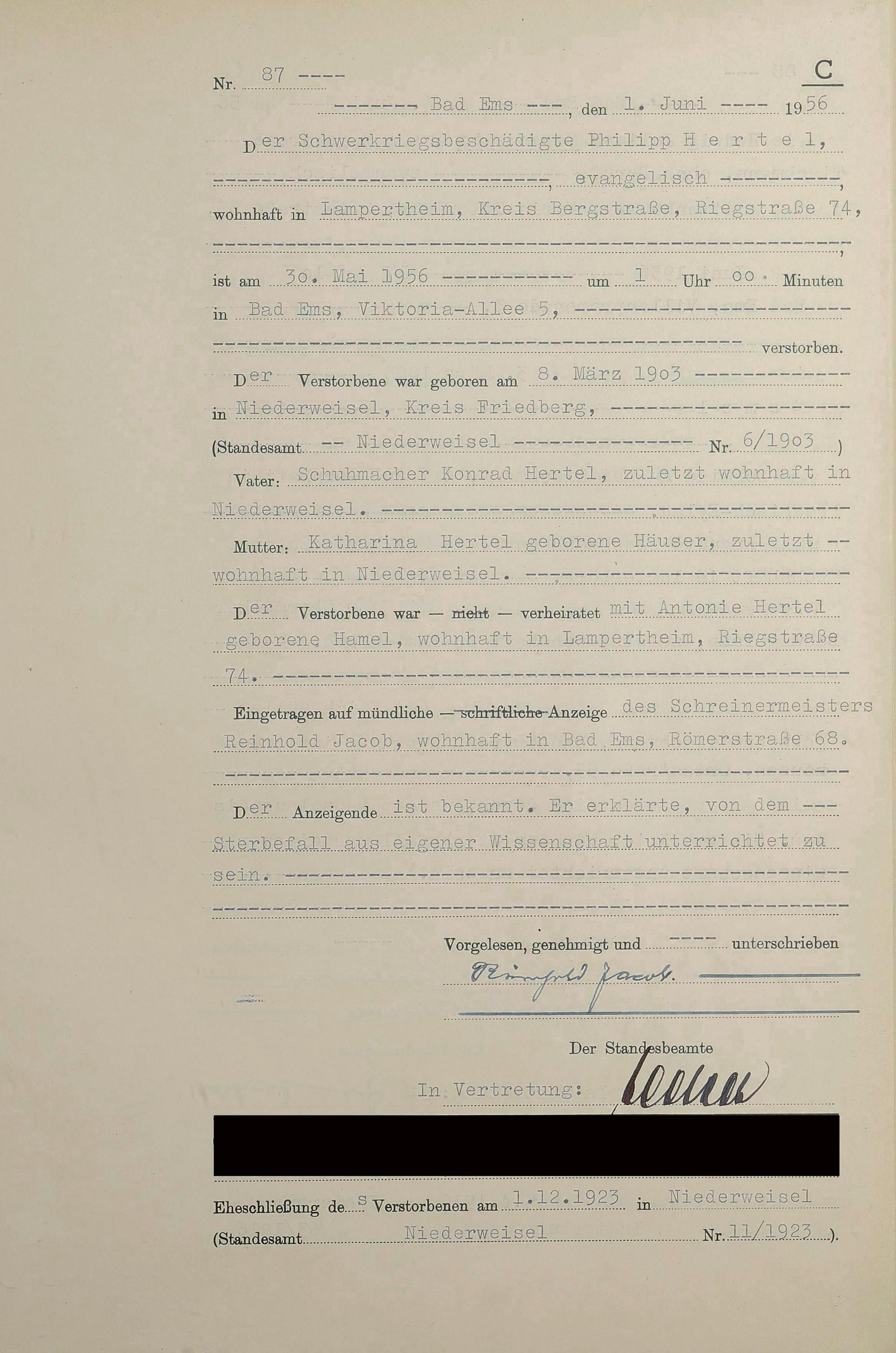 1532: Sterberegister 1956