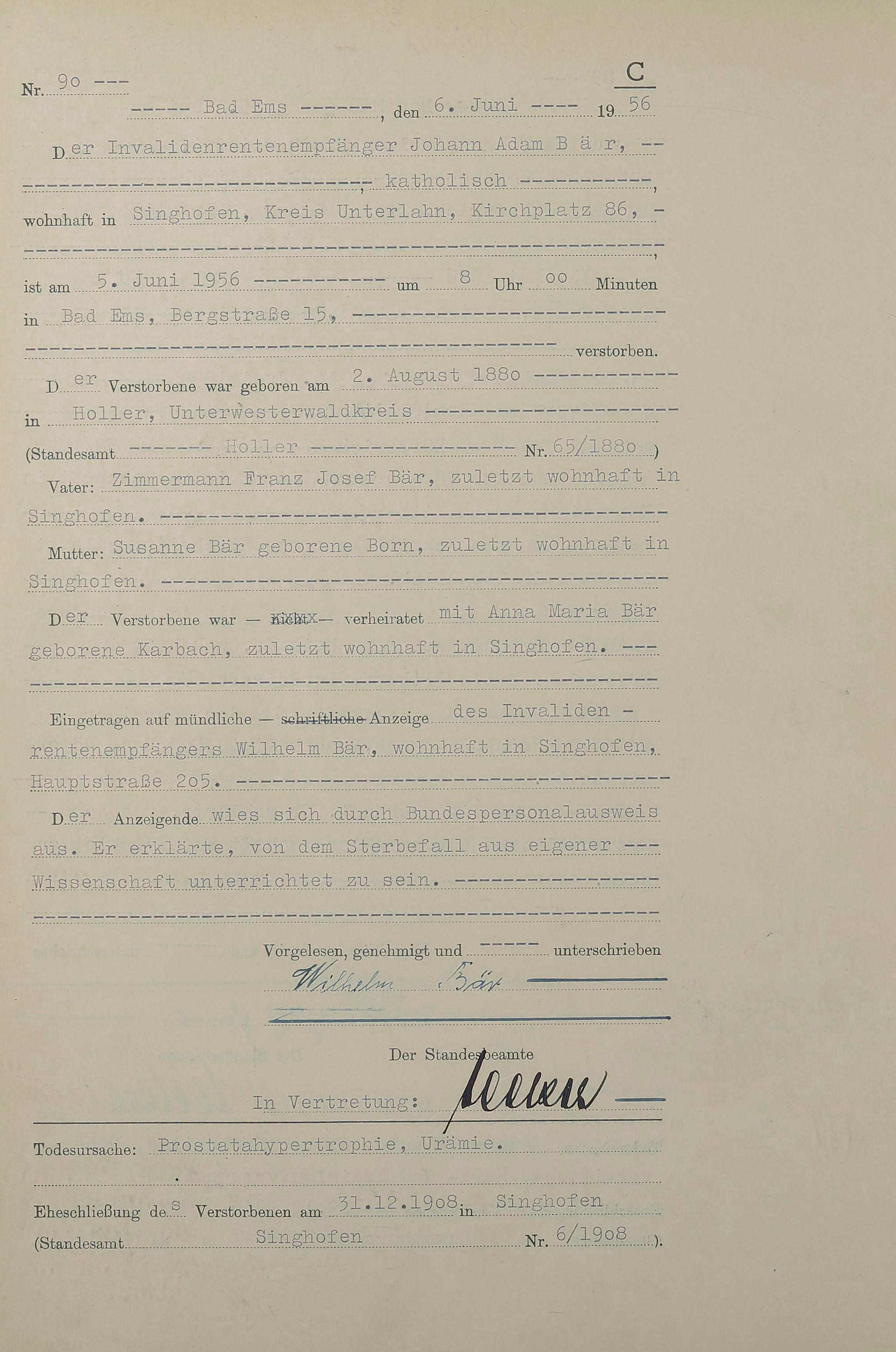 Sterberegister 1956