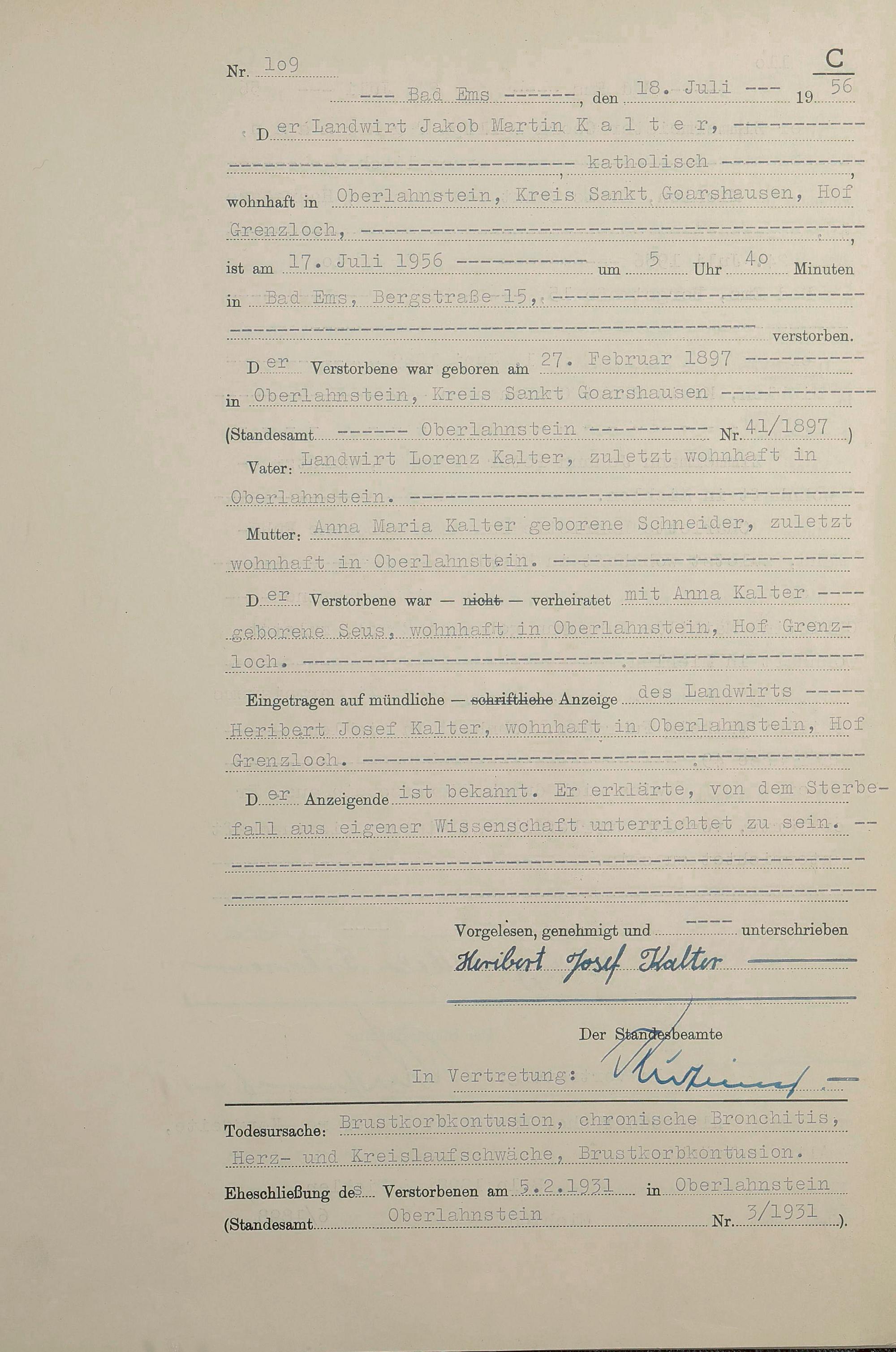 1532: Sterberegister 1956