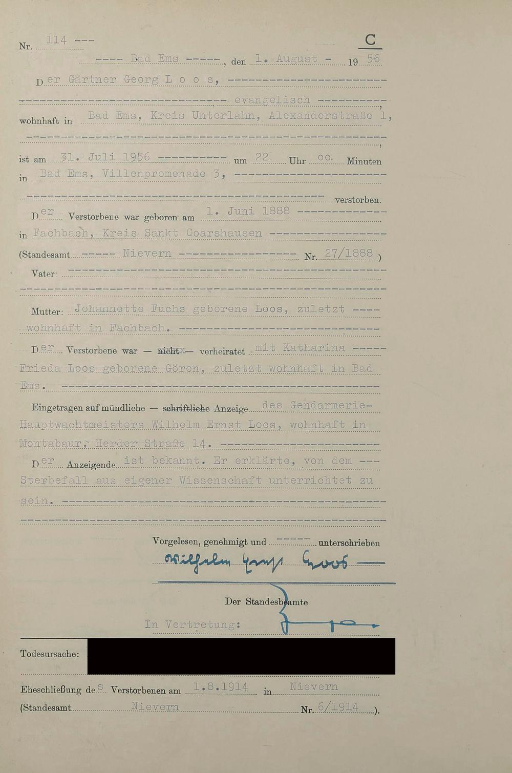 1532: Sterberegister 1956