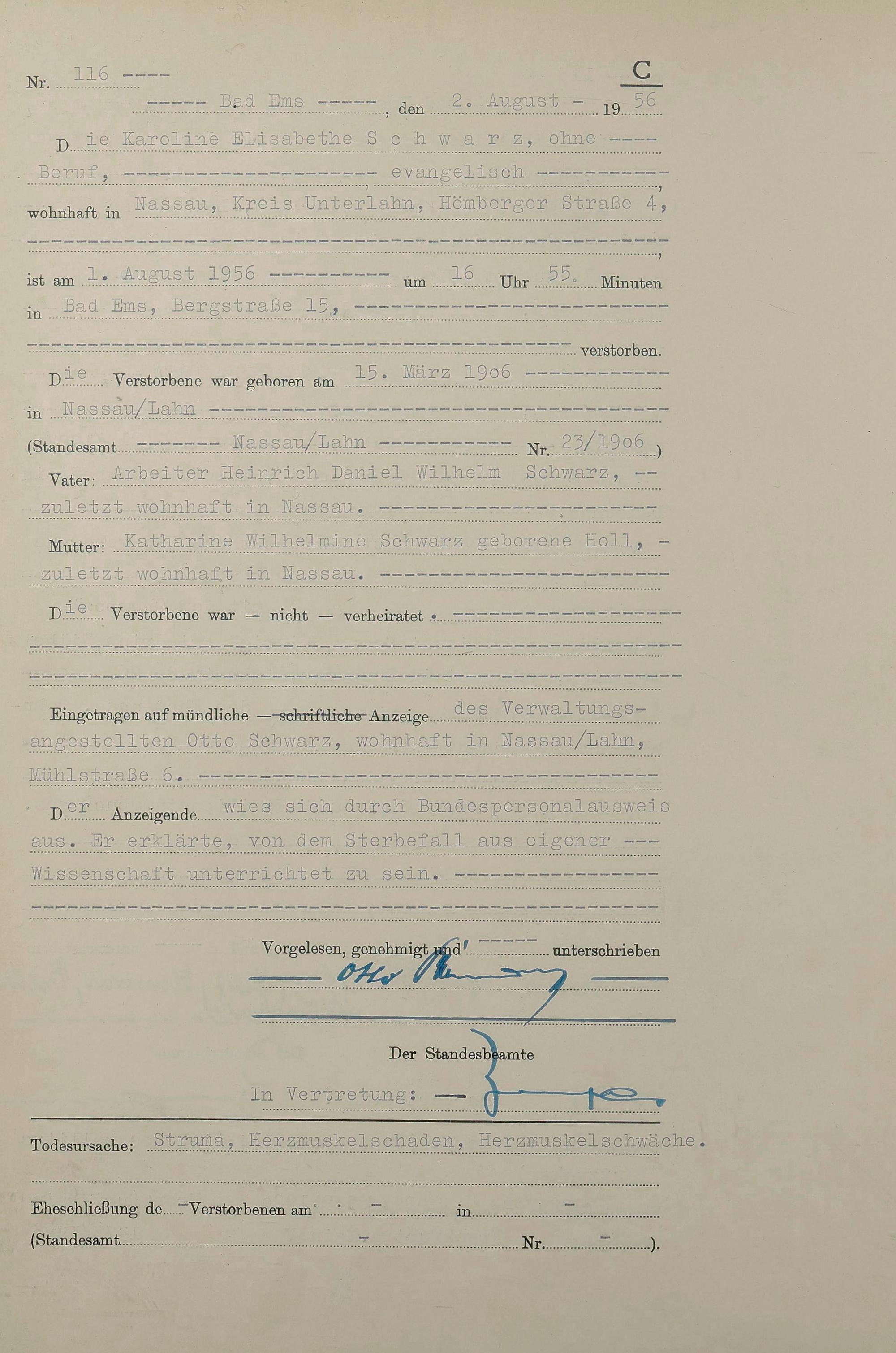 1532: Sterberegister 1956