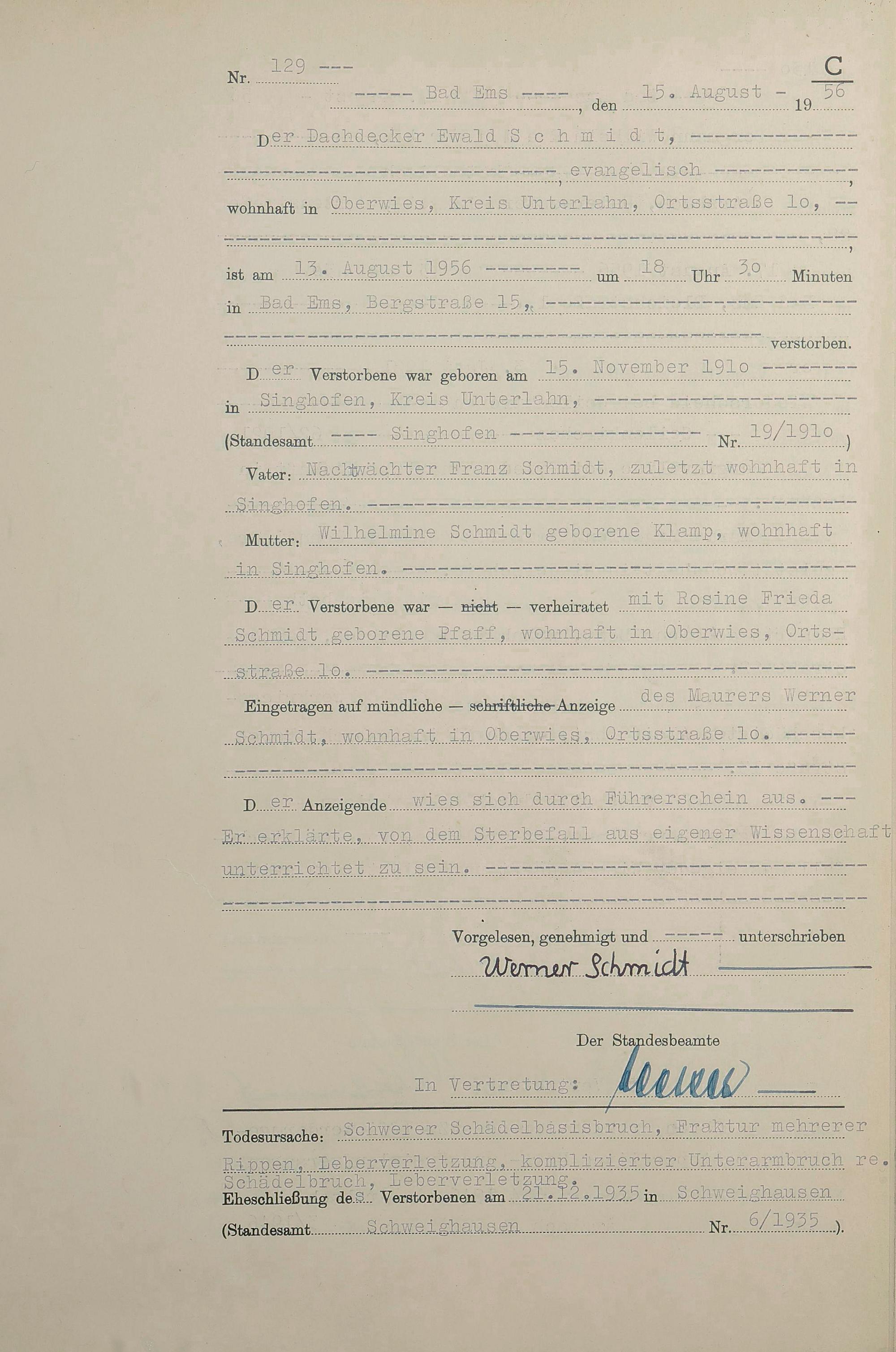 1532: Sterberegister 1956