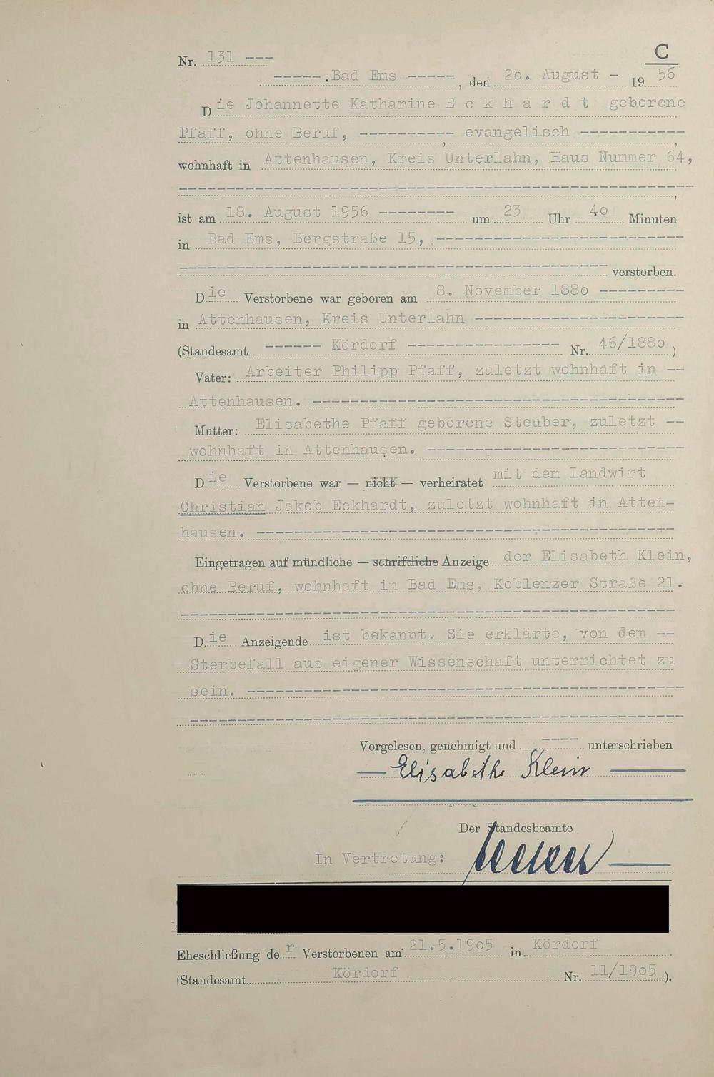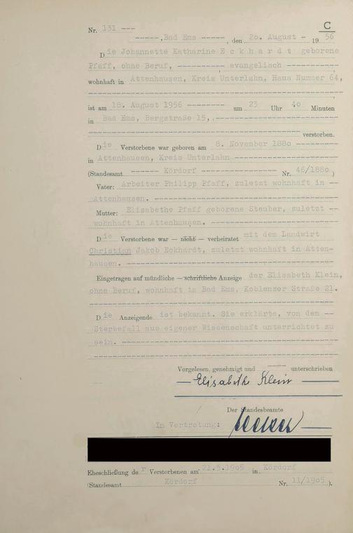 1532: Sterberegister 1956