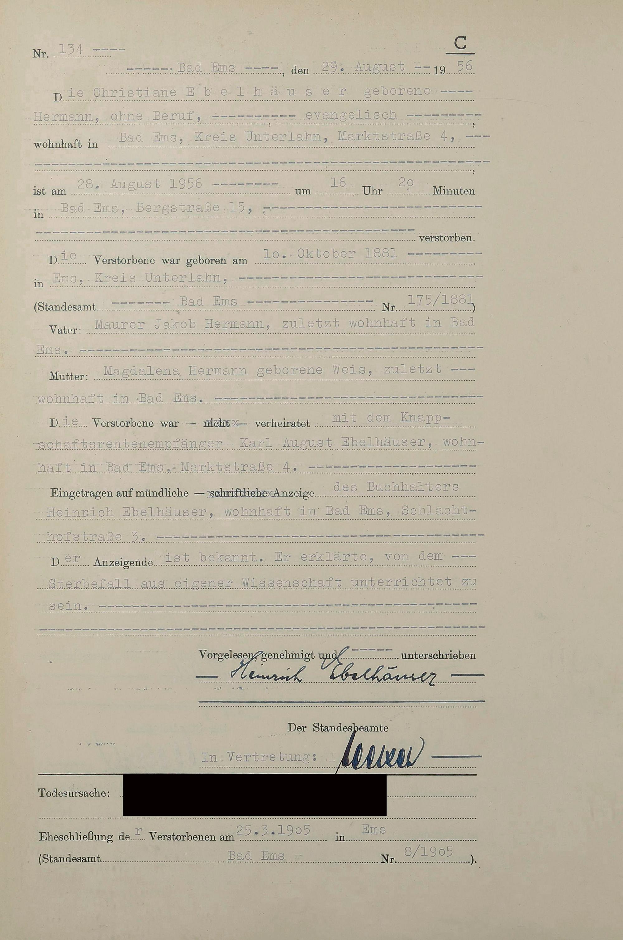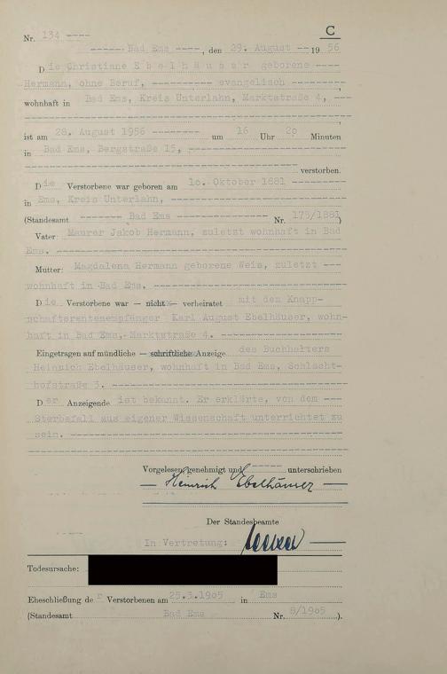 1532: Sterberegister 1956