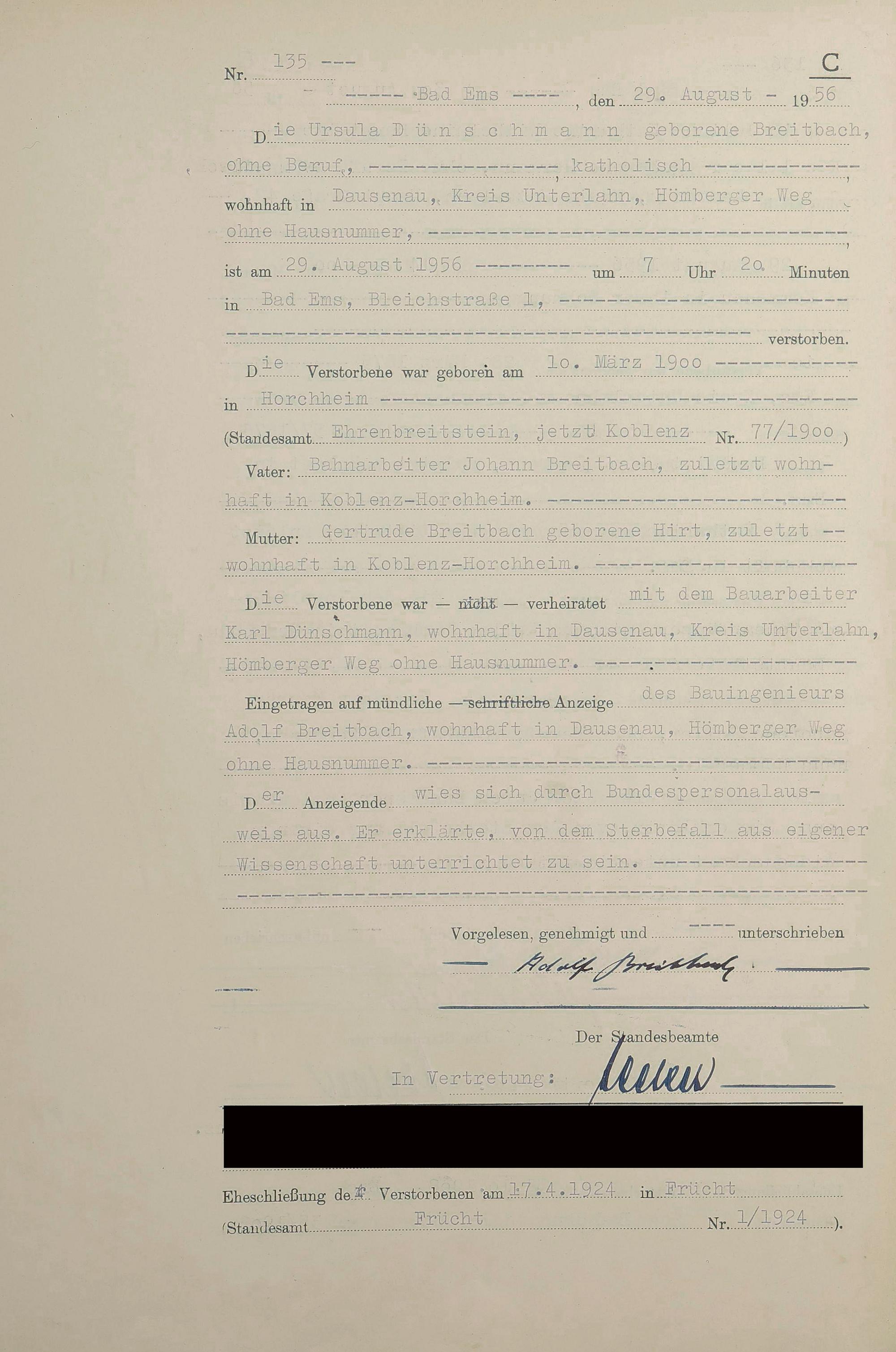 1532: Sterberegister 1956