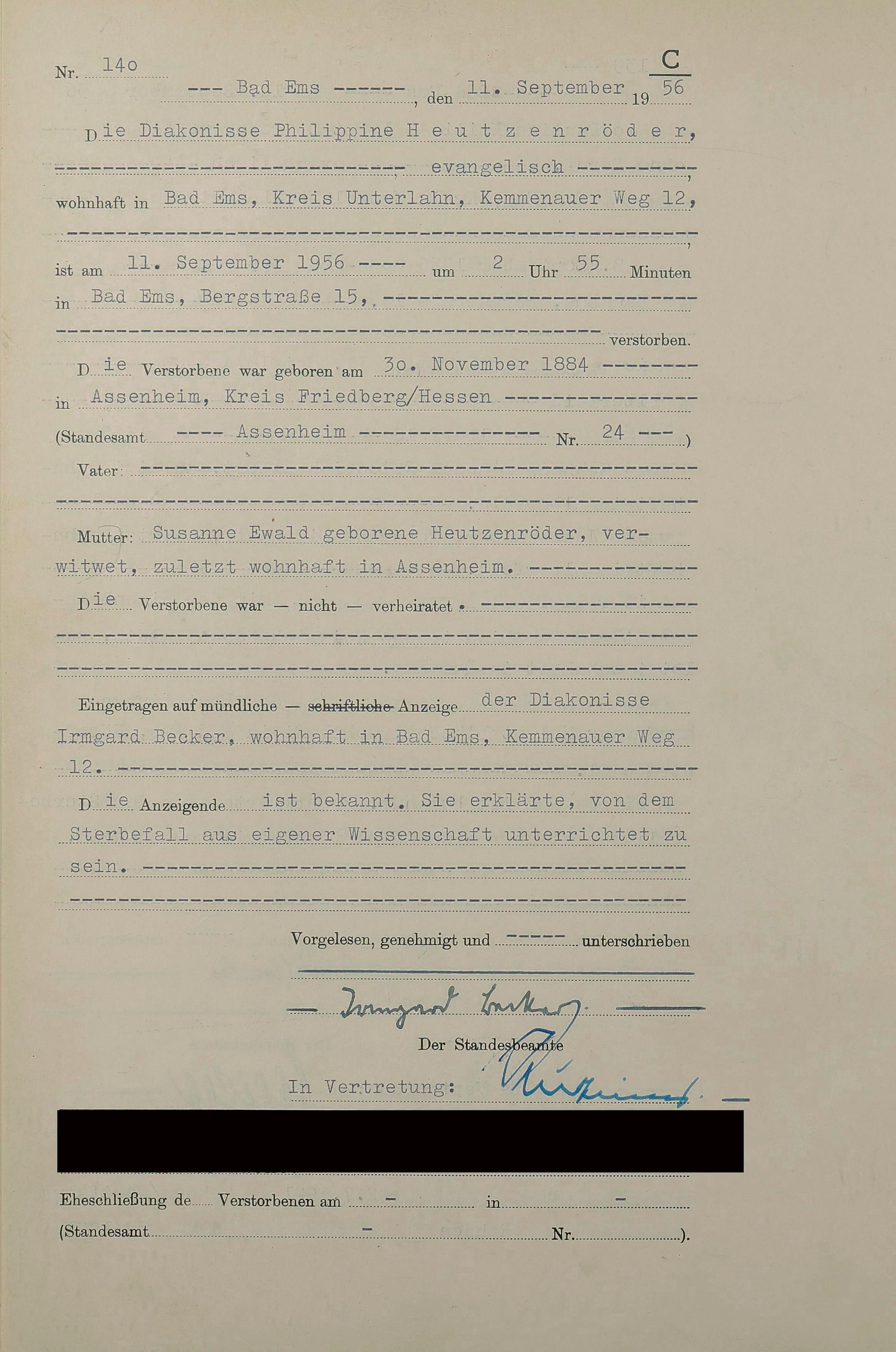 1532: Sterberegister 1956