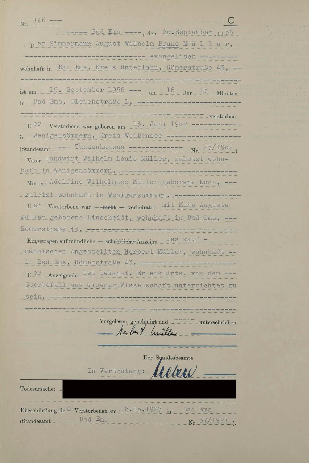 1532: Sterberegister 1956