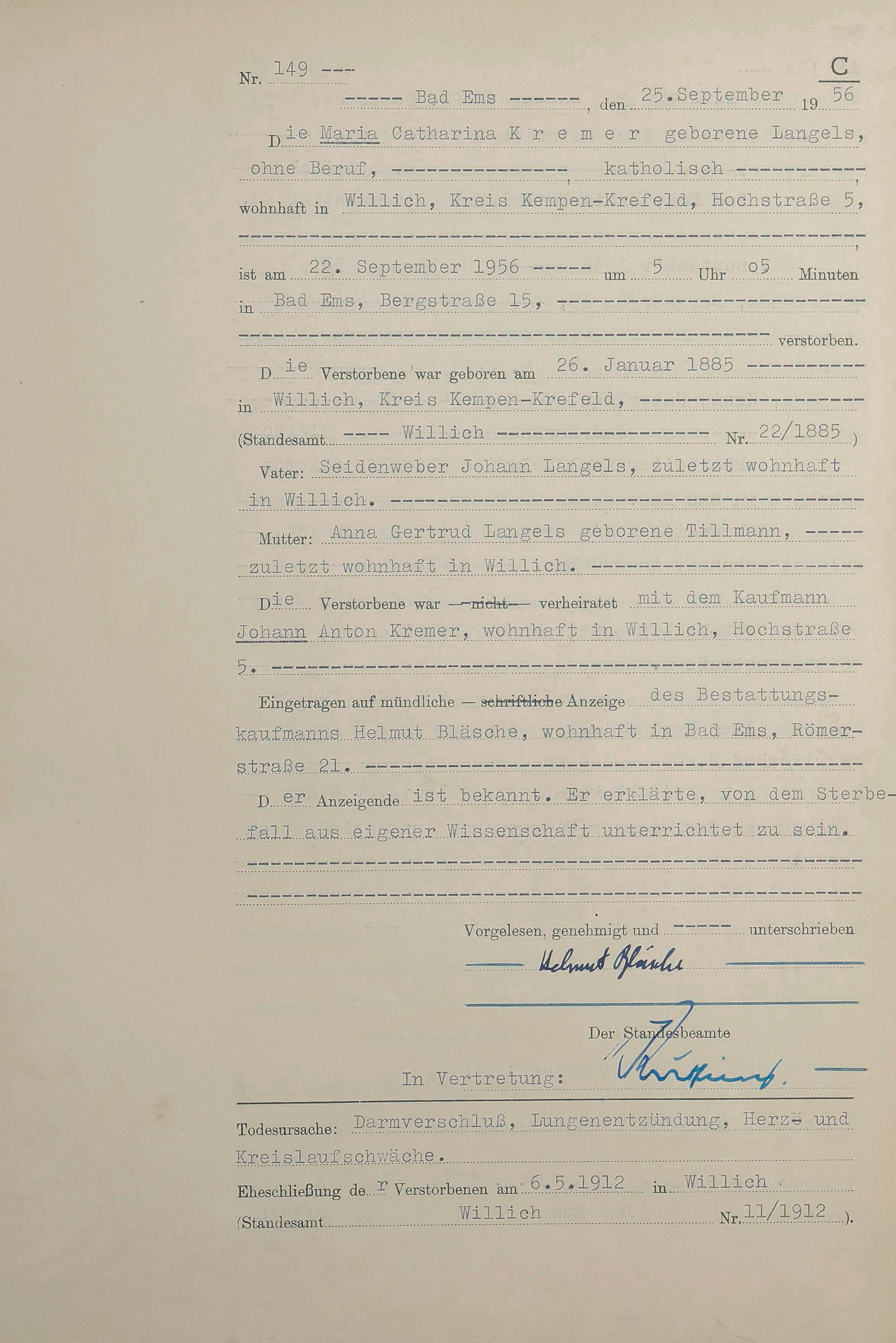 1532: Sterberegister 1956