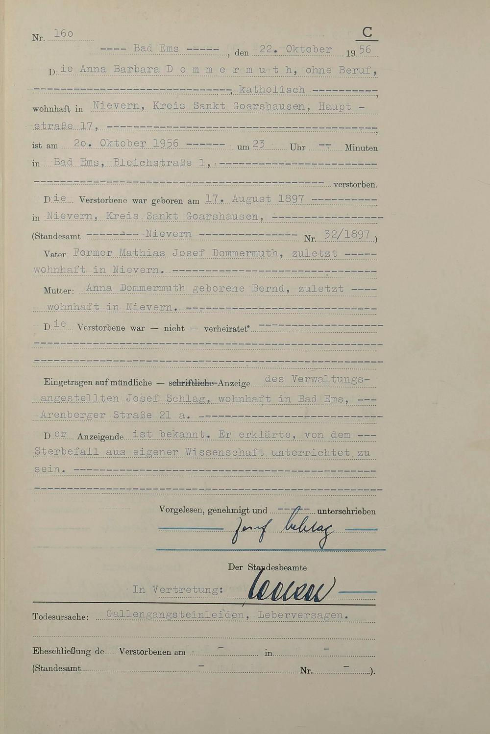 1532: Sterberegister 1956
