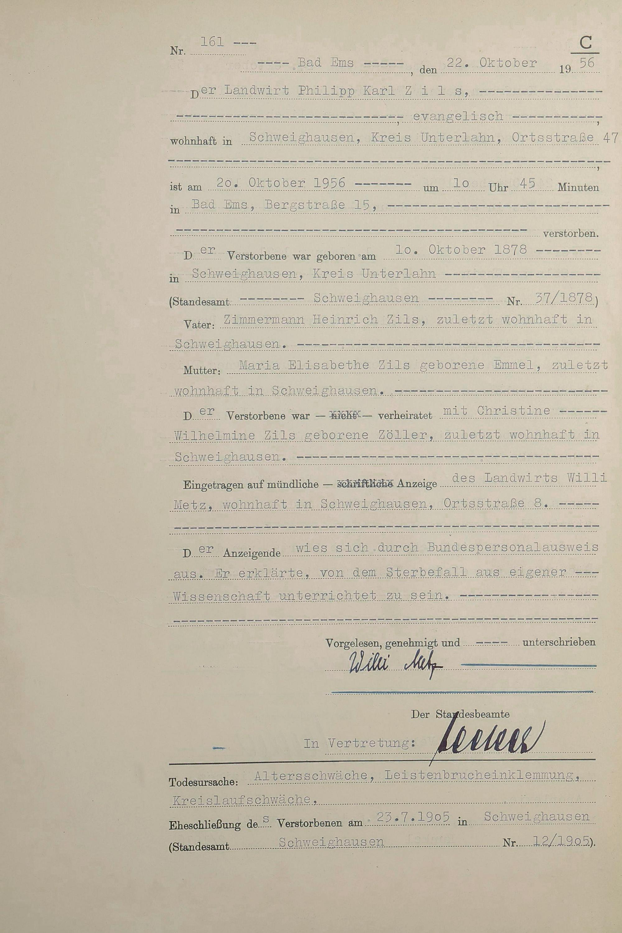 1532: Sterberegister 1956