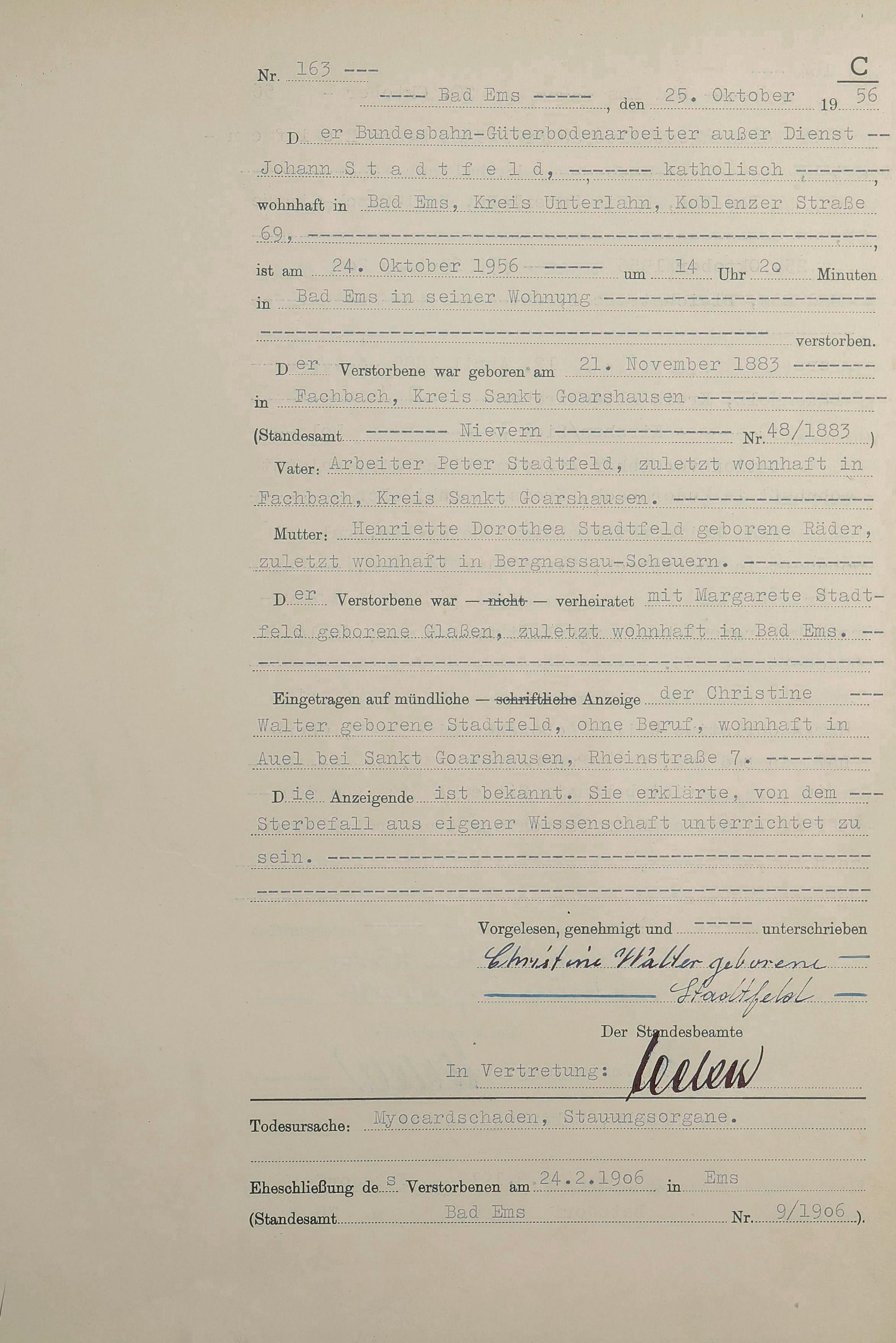 1532: Sterberegister 1956