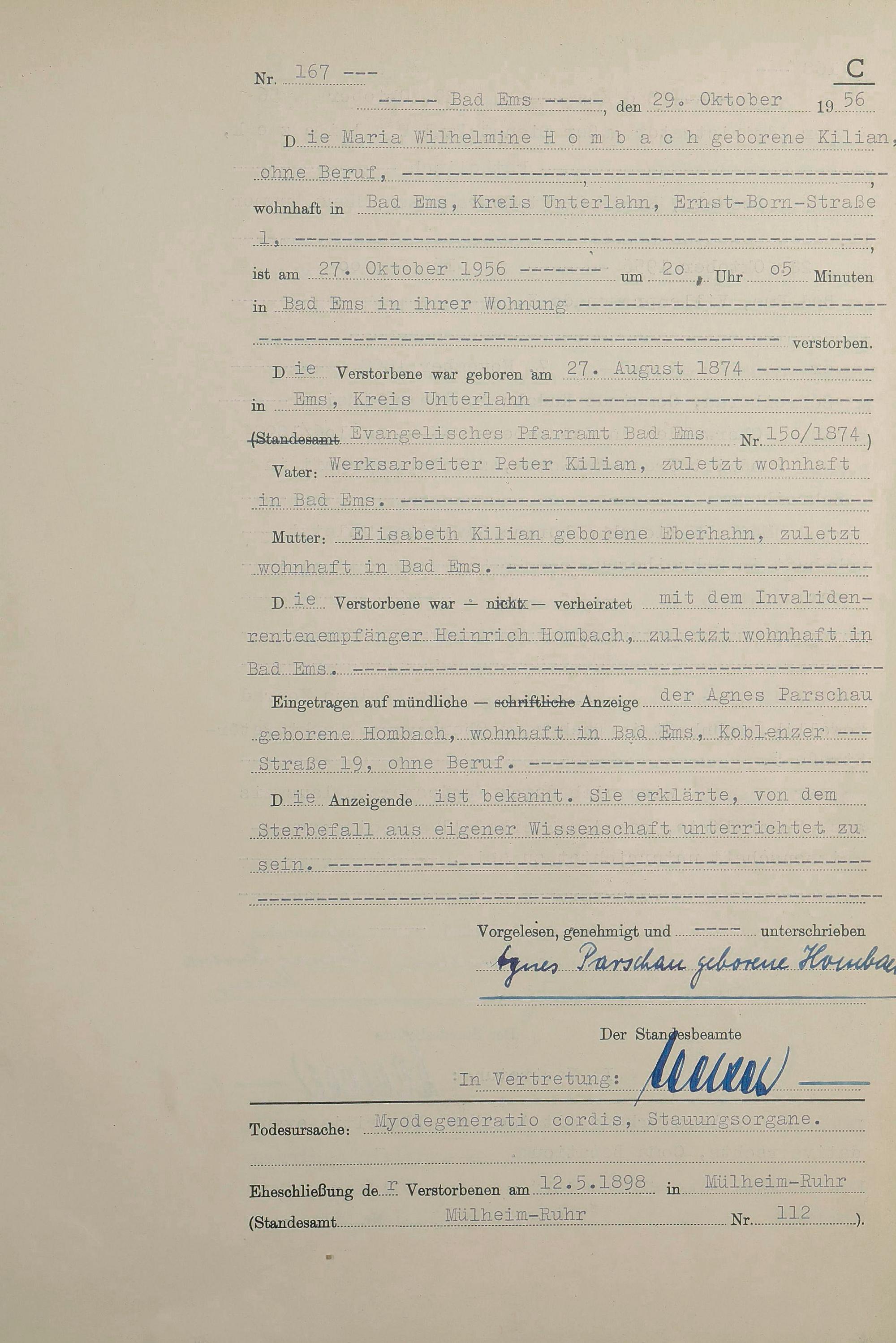 1532: Sterberegister 1956