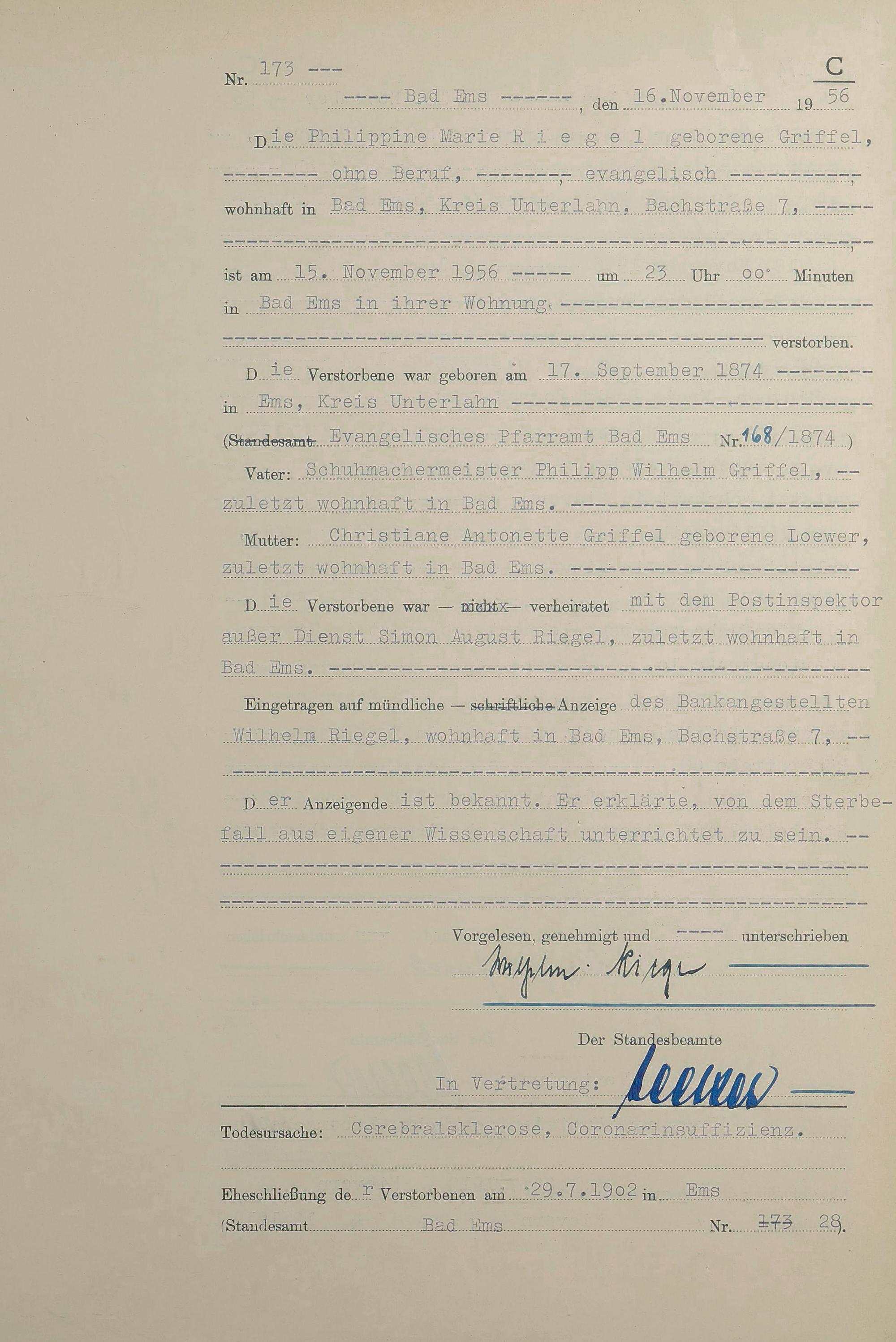 Sterberegister 1956