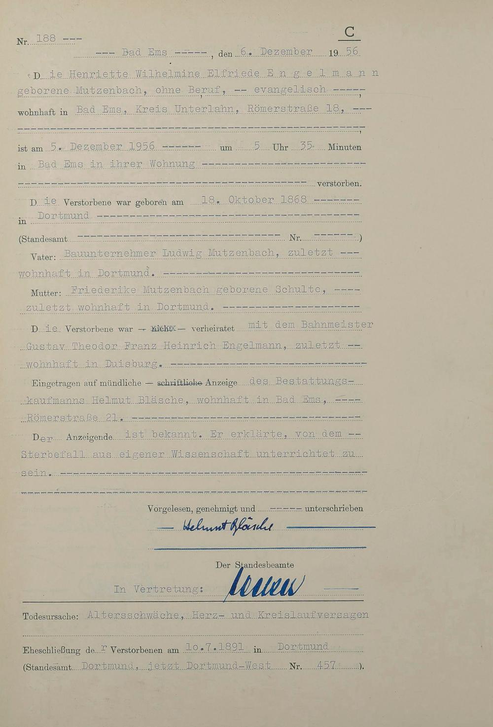 1532: Sterberegister 1956