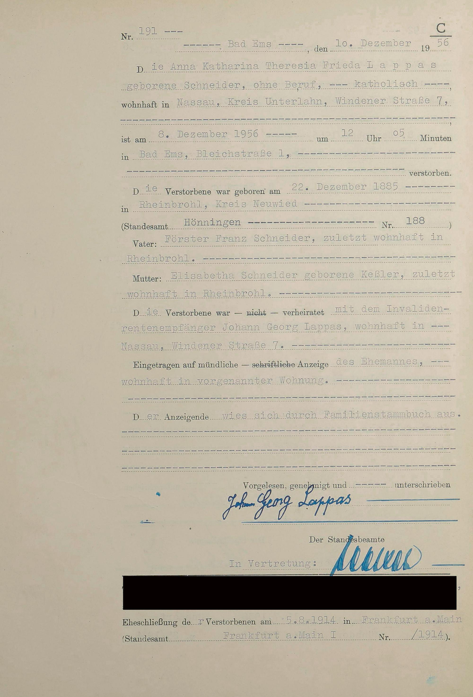 1532: Sterberegister 1956