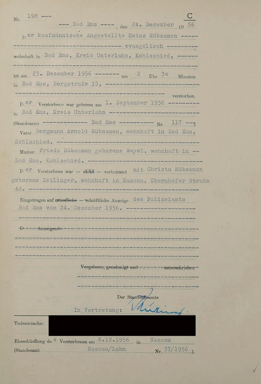 1532: Sterberegister 1956