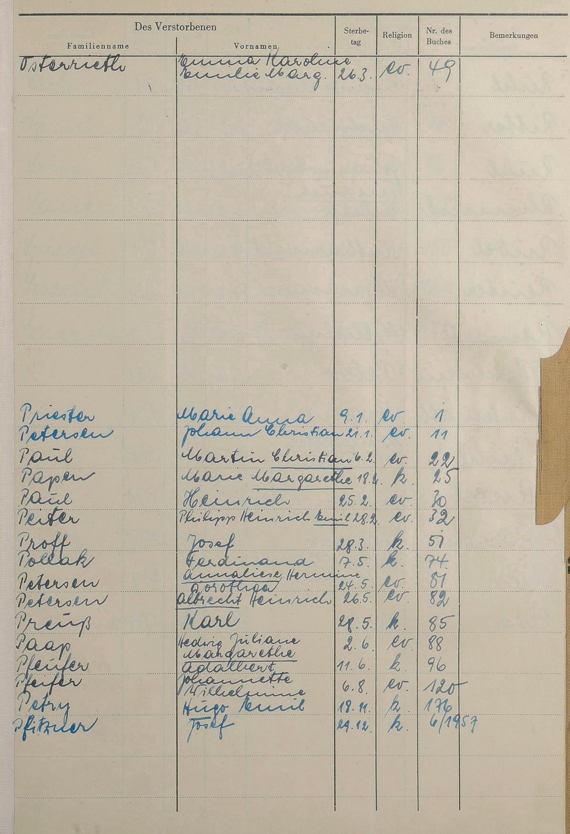 Sterberegister 1956
