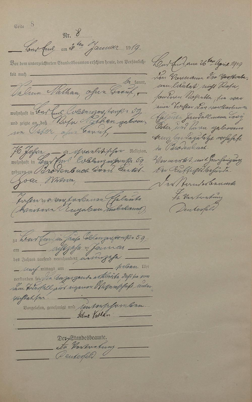 Sterberegister 1919