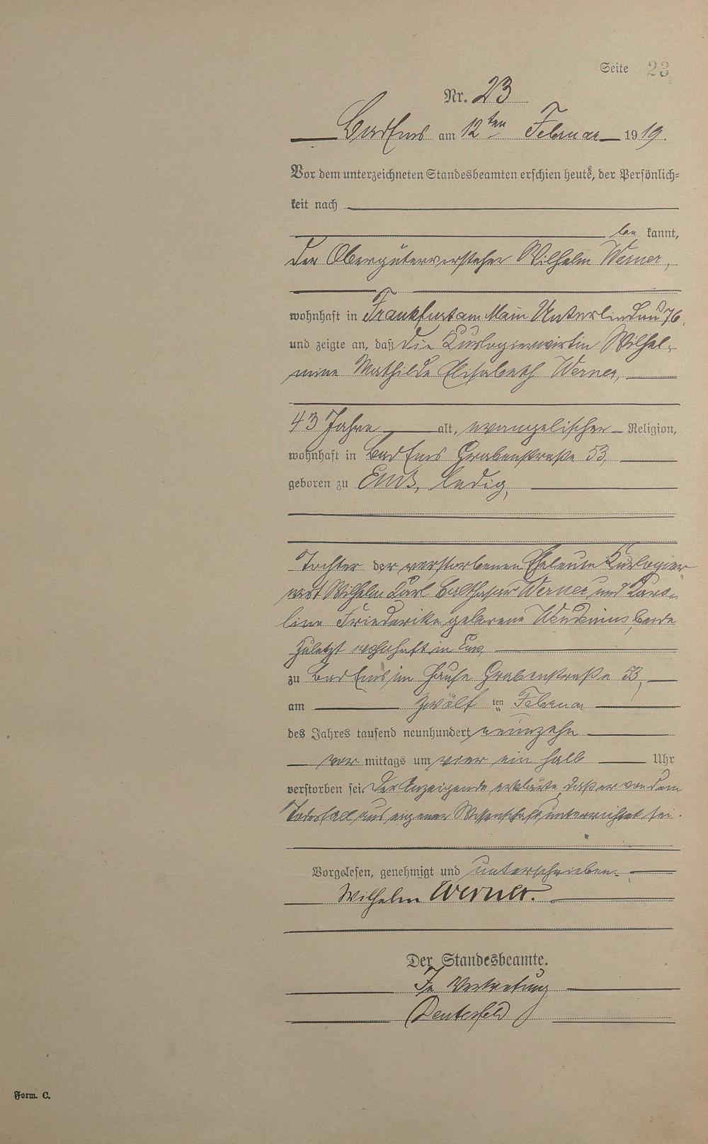 Sterberegister 1919