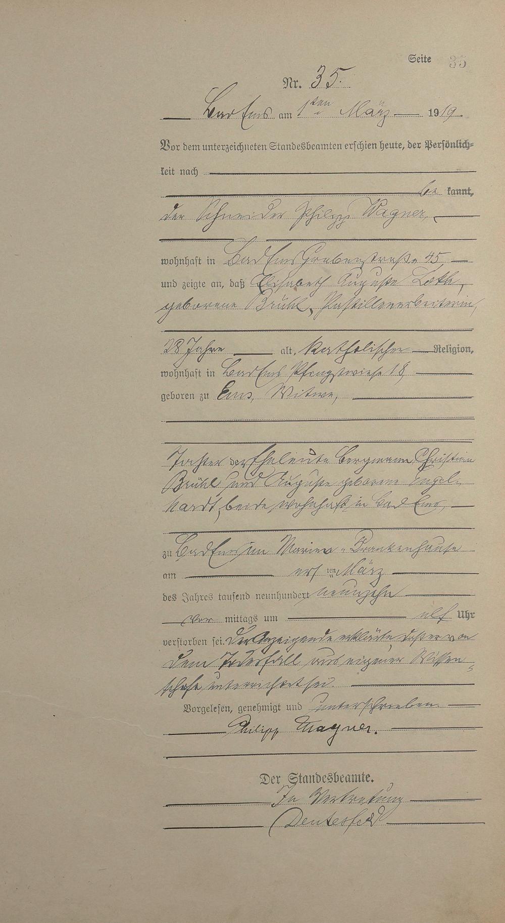 Sterberegister 1919