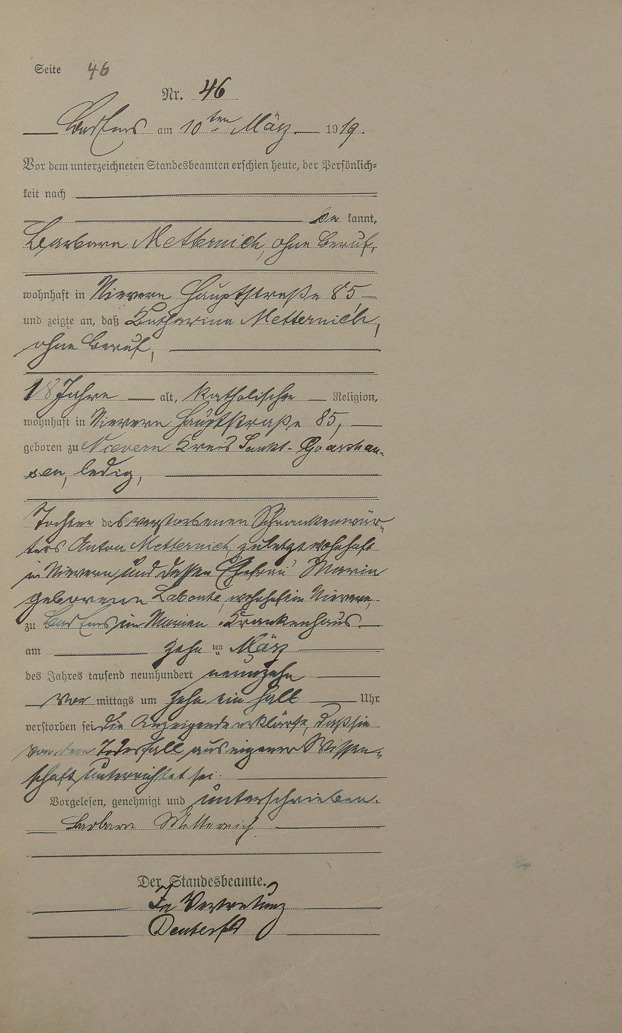 Sterberegister 1919