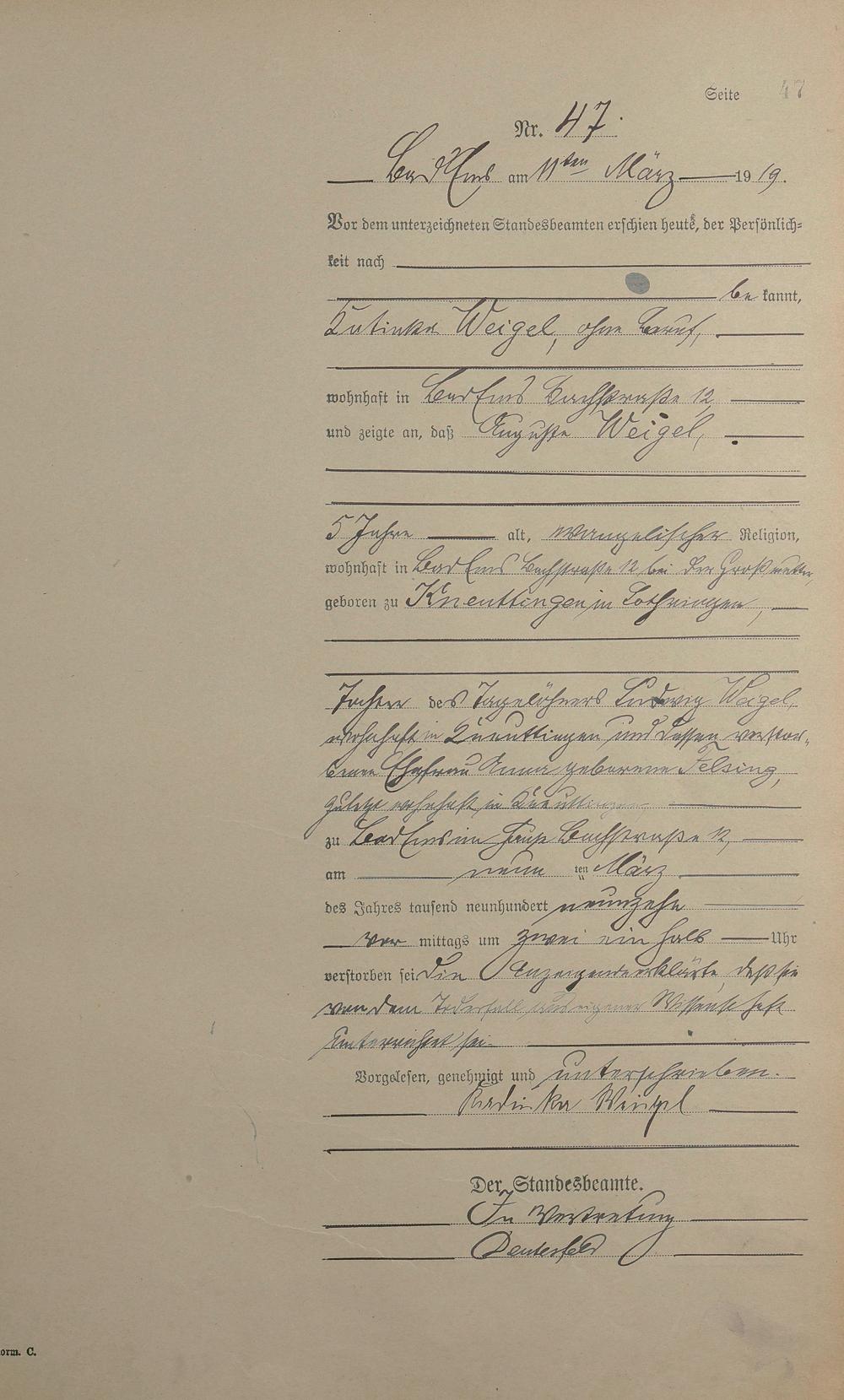 Sterberegister 1919