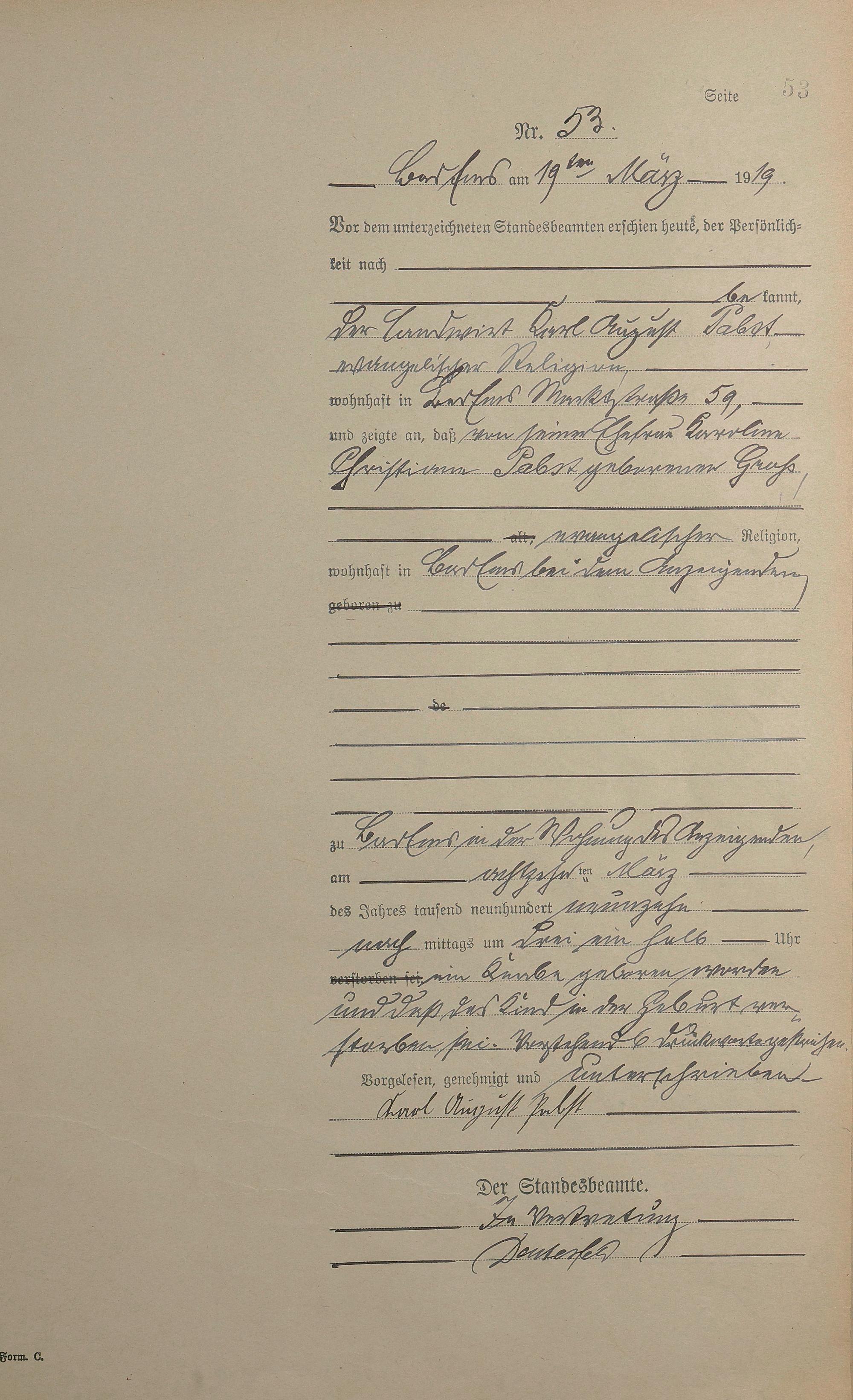 Sterberegister 1919