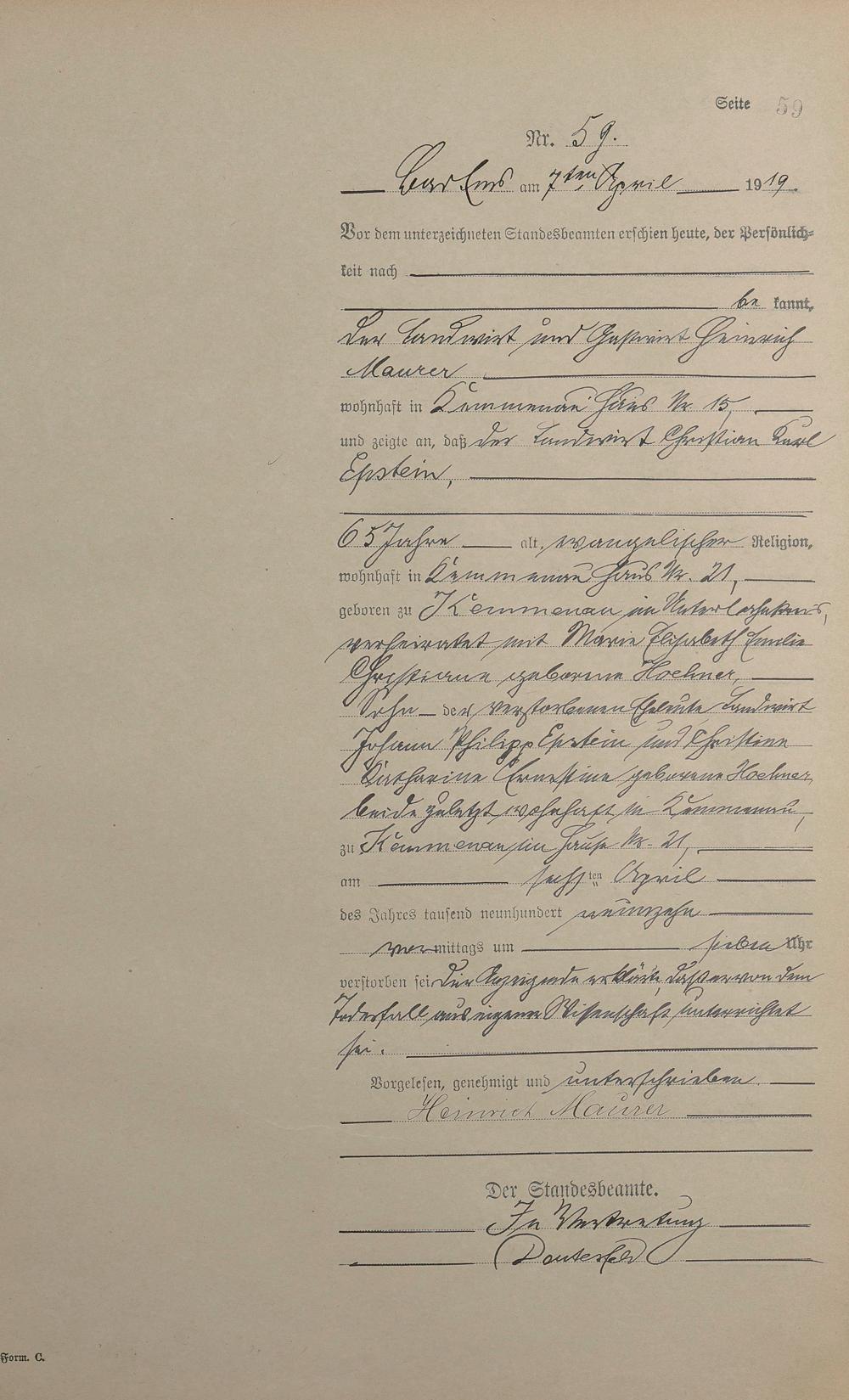 Sterberegister 1919